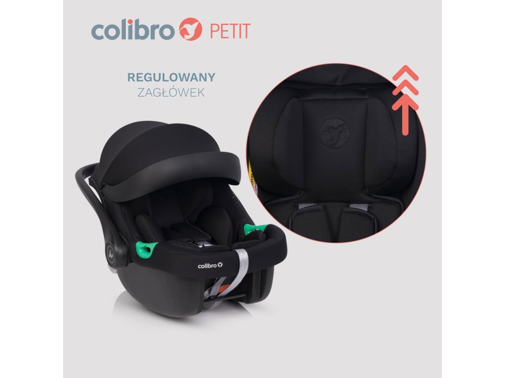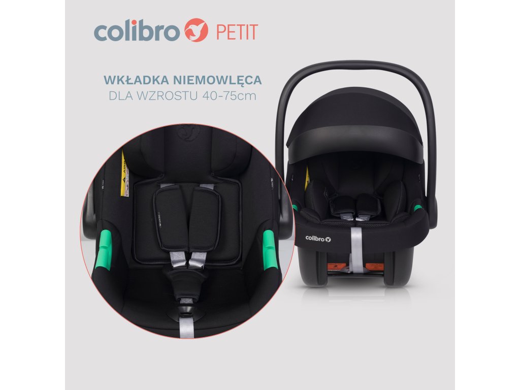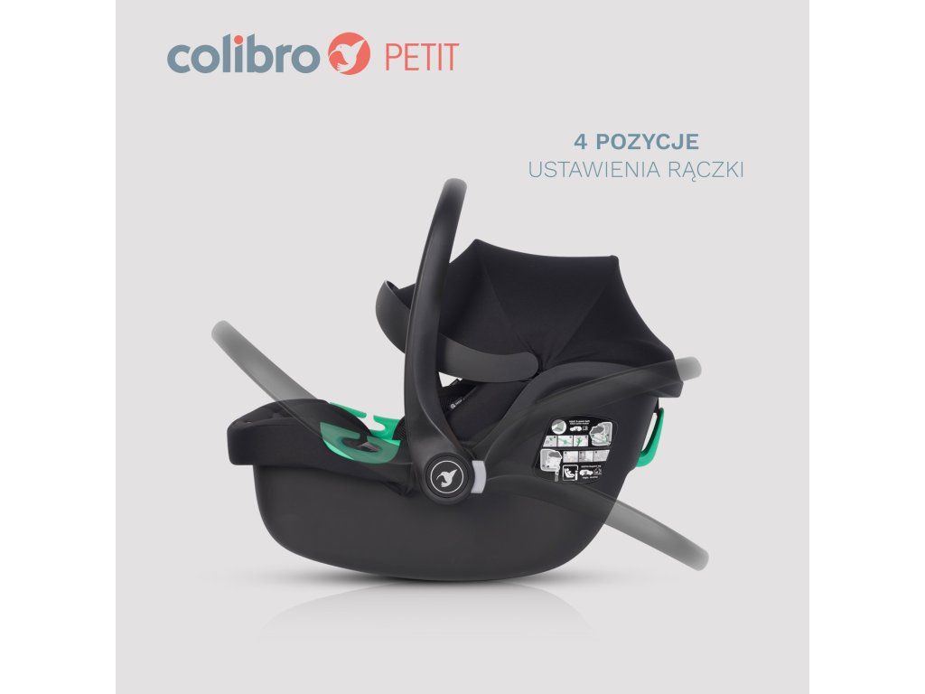 Módní univerzální barvy vám umožní vybrat si autosedačku bez ohledu na barvu kočárku. Sedadlo je instalováno do auta pomocí tříbodových bezpečnostních pásů v souladu s uživatelskou příručkou a praktickými nálepkami umístěnými přímo na sedadle. Sedadlo PETIT je také upraveno pro instalaci na bázi ISOFIX společností COLIBRO.