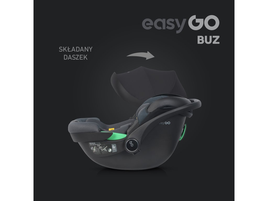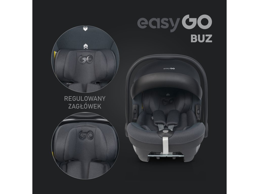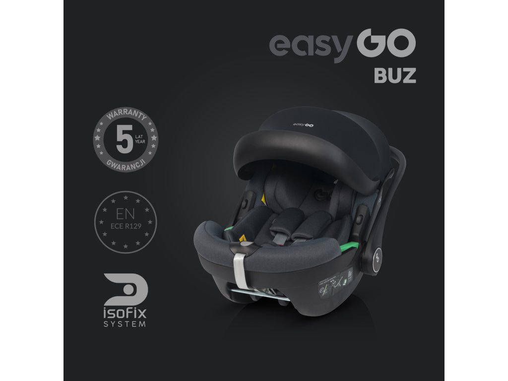 Fotelik samochodowy EASYGO BUZ dla dzieci od 40 do 87 cm (0-13kg) ECE R129 Fotelik samochodowy BUZ marki EASYGO jest przeznaczony dla dzieci o wzroście od 40 do 87 cm (czyli od narodzin do około 13 kg) i jest to tak zwany pierwszy fotelik samochodowy (nosidełko), który można zamontować na każdym wielofunkcyjnym wózku dziecięcym marki EASYGO oraz na większości wózków innych marek, które posiadają uniwersalne adaptery typu „maxi cosi”. Fotelik samochodowy EASYGO BUZ stanowi połączenie bezpieczeństwa, komfortu i nieprzeciętnego stylu. Jest on kolejnym produktem z najnowszej rodziny fotelików samochodowych z homologacją ECE R129 I-SIZE nowej odmienionej marki EASYGO, która w 2024 roku przeszła wizualną metamorfozę. Bezpieczeństwo fotelika samochodowego BUZ zapewnia najnowsza europejska homologacja ECE R129, które zastąpiła poprzednią nienadążającą za rozwojem motoryzacji homologację ECE R44/04. Od 1 września 2024 roku norma ECE R129 stanie się jedynym obowiązującym standardem homologacji fotelików samochodowych w Unii Europejskiej. Kluczowe dla zapewnienia bezpieczeństwa jest dopasowanie fotelika zarówno do dziecka, jak i do pojazdu, a także jego prawidłowy montaż. Najskuteczniejszy fotelik nie zapewni maksymalnego bezpieczeństwa, jeśli nie zostaną spełnione te dwa kryteria. Standard ECE R129 ma na celu zmniejszenie ryzyka związanego z nieprawidłowym doborem i instalacją fotelików samochodowych. Subiektywne kryterium wagi dziecka zostało zastąpione bardziej obiektywnym kryterium wzrostu. Dodatkowo wszystkie foteliki certyfikowane według normy ECE 129 I-SIZE muszą być instalowane przy użyciu systemu ISOFIX, co znacznie ogranicza błędy montażowe. Fotelik samochodowy EASYGO BUZ jest również dostępny w wersji I-SIZE w połączeniu z samochodową obrotową bazą ISOFIX. Ta rozszerzona wersja nosi nazwę BUZ PRO i również znajduje się w ofercie marki EASYGO. Wersja podstawowa bez bazy ISOFIX może być również montowana w samochodzie za pomocą samochodowych pasów bezpieczeństwa. Fotelik samochodowy EASYGO BUZ jak każdy fotelik przeznaczony dla grupy wzrostowej od 40 do 87 cm jest fotelikiem RWF, więc musi być montowany w samochodzie tyłem do kierunku jazdy. Testy wykazują, że jest to najbezpieczniejsza możliwa metoda montażu. Tapicerka fotelika samochodowego jest równie ważna jak jego konstrukcja. Jest ona integralną częścią mającą wpływ na bezpieczeństwo dziecka i jego komfort podczas podróży. EASYGO BUZ posiada system wkładek redukcyjnych oraz tapicerkę wykonaną z najwyższej jakości tkanin. Zewnętrzne elementy fotelika (te, które mają bezpośredni kontakt z rączkami i nóżkami dziecka oraz wkładki redukcyjne) wykonane zostały z miękkiej dzianiny w modnych i praktycznych kolorach typu melanż. Wnętrze fotelika wykonane zostało z wentylowanej tkaniny 3D typu „plaster miodu”, dzięki czemu doskonale odprowadza wilgoć i zapewnia dziecku komfort nawet podczas długich podróży. Fotelik posiada 11-stopniową regulację wysokości zagłówka zintegrowaną z regulacją wysokości pasów naramiennych uprzęży. Co to oznacza? Wystarczy dopasować wysokość zagłówka do wzrostu dziecka, a uprząż automatycznie zostanie ustawiona na odpowiedniej wysokości. Pamiętajmy, że w sytuacji kolizji lub wypadku drogowego kluczową rolę odgrywa prawidłowe dopasowanie uprzęży. Główne zalety fotelika EASYGO BUZ HOMOLOGACJA ECE R129 – jest to jedyna dopuszczalna homologacja w Unii Europejskiej. Jest również uważana za najbardziej obiektywną. Niektóre znane komercyjne instytuty (jak np. ADAC) prowadzą własną klasyfikację ocen fotelików samochodowych. Pamiętaj jednak, że ocena bezpieczeństwa stanowi zaledwie 50% oceny łącznej. MOŻLIWOŚĆ MONTAŻU NA WóZKU DZIECIĘCYM - fotelik samochodowy BUZ można zamontować na dowolnym wózku wielofunkcyjnym marki EASYGO za pomocą właściwych dla danego modelu wózka adapterów. Dzięki najpopularniejszym uniwersalnym wpięciom typu „maxi cosi” fotelik BUZ można zamontować na każdym wózku dziecięcym posiadającym adaptery uniwersalne typu „maxi cosi”. RWF DO 87 CM – przewożenie dziecka tyłem do kierunku jazdy jest najbezpieczniejszą pozycją w samochodzie. Fotelik BUZ może być używany tylko w tym ułożeniu. 11-STOPNIOWA ZINTEGROWANA REGULACJA WYSOKOŚCI ZAGŁóWKA I UPRZĘŻY – dopasowując wysokość zagłówka do wzrostu dziecka automatycznie dopasujesz również wysokość uprzęży zabezpieczającej dziecko. Nie ma konieczności demontażu i ponownego montażu pasów naramiennych uprzęży. NOWOCZESNY MODNY STYL – trzeba przyznać, że mimo wielu atutów użytkowych oraz tych mających wpływ na bezpieczeństwo, fotelik EASYGO BUZ prezentuje się niezwykle okazale. Projektanci EASYGO zawsze podążają za najnowszymi trendami, żeby wybierane przez Państwa produkty nie były jedynie praktyczne, ale aby również były modne i estetyczne. SPECYFIKACJA TECHNICZNA - homologacja ECE R129 dla dzieci o wzroście od 40 do 87 cm, - możliwość przewożeni a dziecka tyłem do wzrostu 87 cm (RWF), - 11-stopniowa regulacja zagłówka zintegrowana z regulacją wysokości pasów naramiennych (optymalne zabezpieczenie główki dziecka na każdym etapie rozwoju), - 5-punktowe pasy bezpieczeństwa (uprząż) - system wkładek redukcyjnych z podparciem lędźwi, - wkładki redukcyjne wykonane z pianki „memory foam”, - zastosowanie specjalnej pianki energochłonnej, - możliwość demontażu tapicerki do prania, - regulowany uchwyt do przenoszenia, - regulowana niezależna budka przeciwsłoneczna, WYMIARY [cm] Wysokość/długość/szerokość: 57 x 64 x 44 cm WAGA [kg]: 4,55 kgDoplňkové parametry