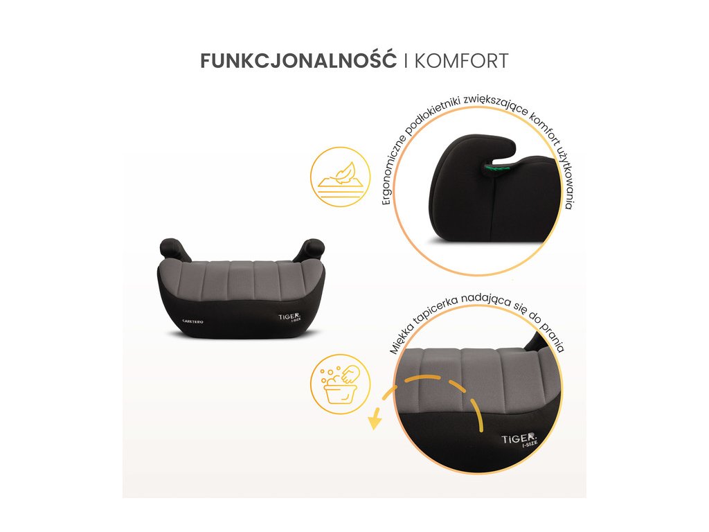 Fotelik dziecięcy Tiger i-Size typu booster to ergonomicznie zaprojektowane rozwiązanie dla starszych dzieci, kóre osiągnęły odpowiednią wagę i wzrost, umożliwiające przejście z tradycyjnego fotelika do podkładki.