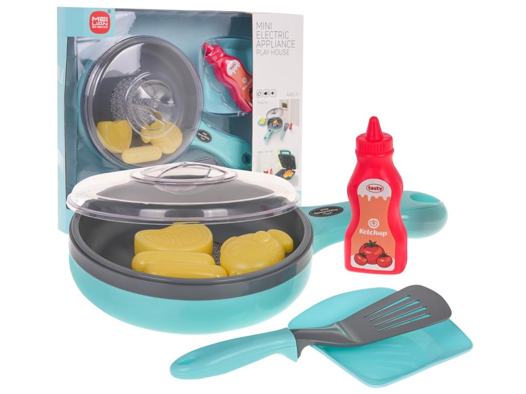 - a toy intended for children from 3 years of age, - a superbly made set with attention to detail, - safe for children, - realistic appearance, - sound effects: frying sounds, - lighting effects, - dummy products, when heated they look fried. |