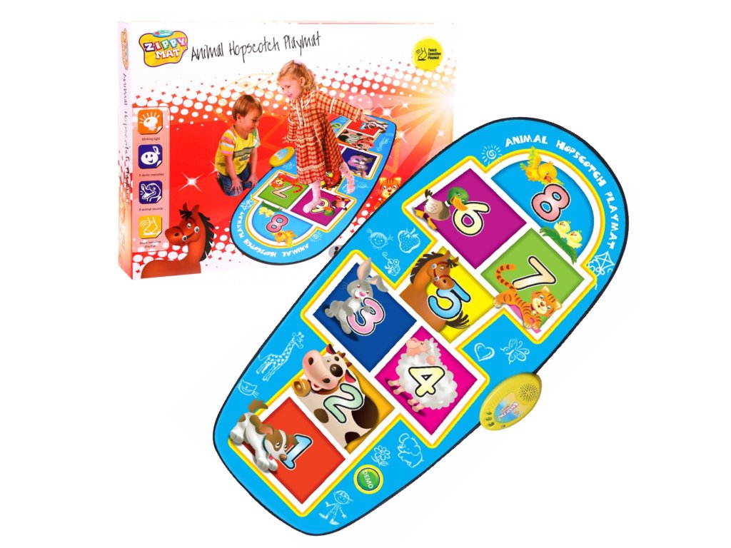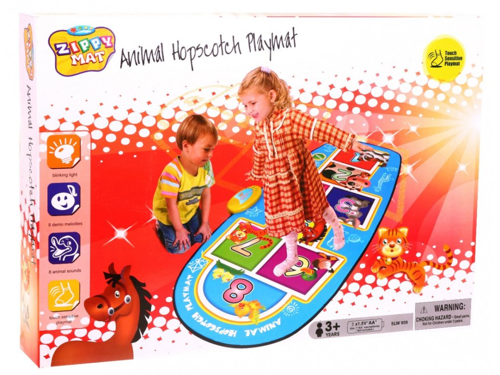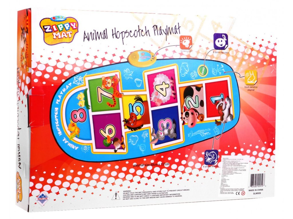The mat consists of: - 8 large square boxes - each box is assigned a different pet (male, fudge, bunny, lamb, horse, duck, kitten, birds) - after pressing one of the boxes, each animal will release its characteristic cheerful sound, - a large colored panel with a loudspeaker, lights and power switch (ON / OFF). - DEMO button, by means of which you can change the background music (8 soundtracks pleasant to the ear), The surface of the mat is non-slip and stain resistant (you can easily remove dirt). The mat will turn itself off after 2 minutes of non-use. The music panel is powered by 3 AA 3 x 1.5V batteries (not included). |