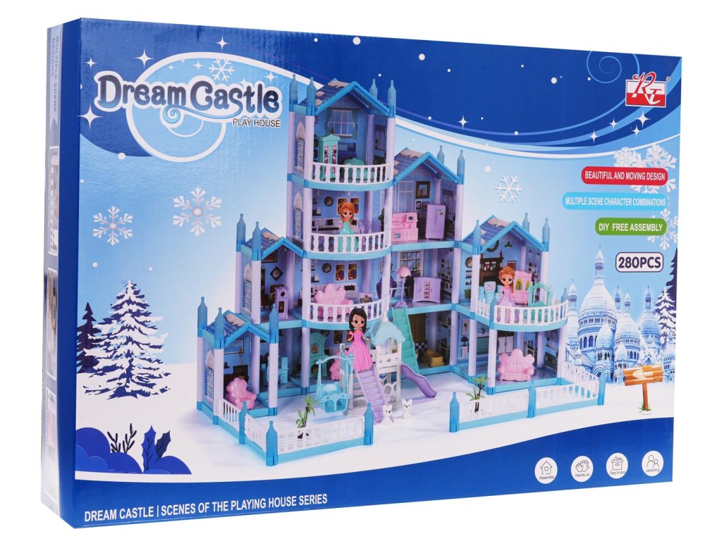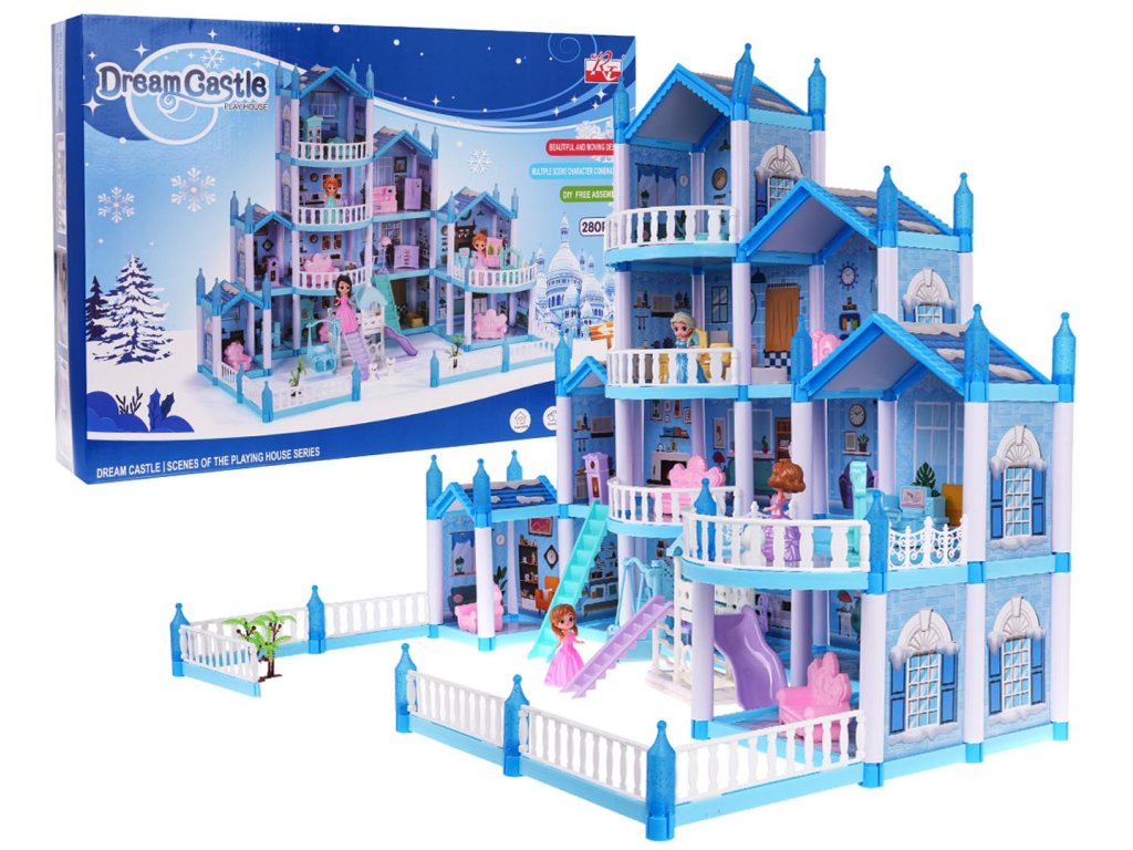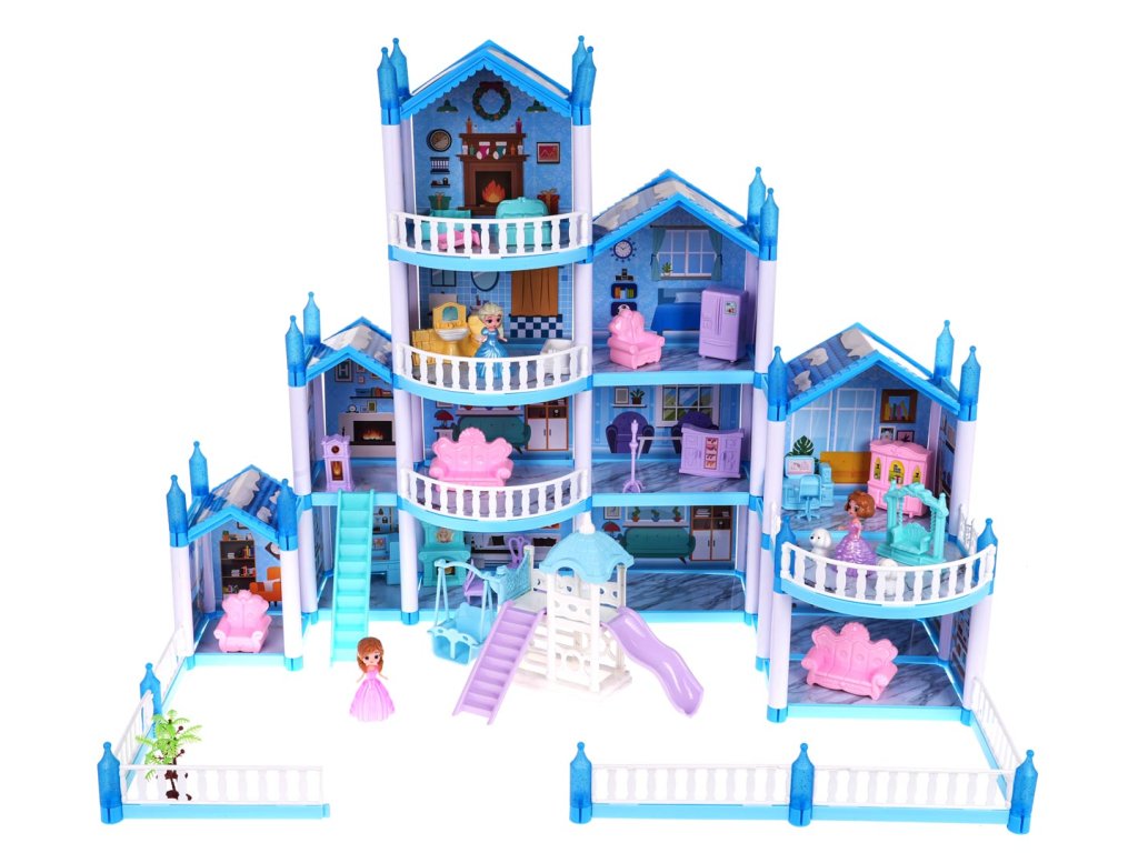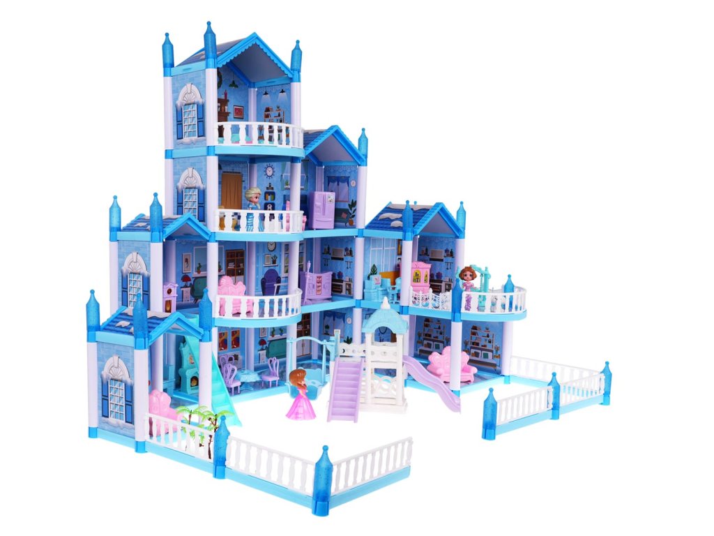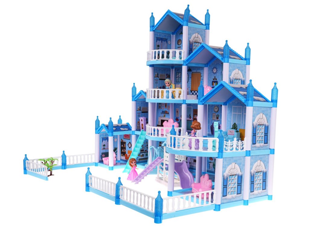 A beautiful, four-level house for self-assembly for children from three years of age. The set includes complete house equipment and 3 princess figures. Outside we also have a charming fence and a playground with a swing and slide.