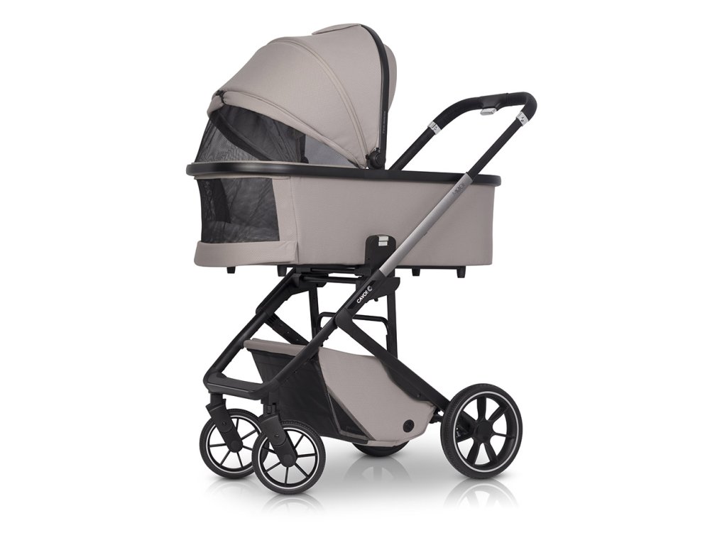 Gondola do wózka dziecięcego Cavoe Moi+ Taupe Gondola do wózka dziecięcego MOI+ również otrzymała dodatkową funkcjonalność dzięki zastosowaniu przycisków z pamięcią (funkcja Memory Buttons). Funkcja ta pozwala zdemontować gondolę przy użyciu jednej ręki. Po prostu wciśnij przyciski po obu stronach gondoli i unieś ją do góry trzymając za wygodny uchwyt w budce. Gondola wózka MOI+ jest duża i wygodna. Jej wewnętrzna długość to 78 cm, więc z pewnością wystarczy do czasu jak dziecko przesiądzie się do siedziska. Gondola jest bardzo lekka i zgrabna. Można ją złożyć na płasko na czas transportu lub przechowywania. W przedniej części gondoli znajduje się duży zamykany panel wentylacyjny, który w połączeniu z wentylatorem w budce, doskonale sprawdzi się ciepłe letnie dni. Gondola posiada plastikowe stopki, dzięki czemu nie ubrudzi się po postawieniu na ziemi. Funkcja Memory Buttons (przyciski z pamięcią) umożliwia wygodny demontaż za pomocą jednej ręki. WYMIARY [cm] Wnętrze gondoli (długość x szerokość x wysokość): 78 x 31 x 20 WAGA [kg] Gondola: 4,2Doplňkové parametry