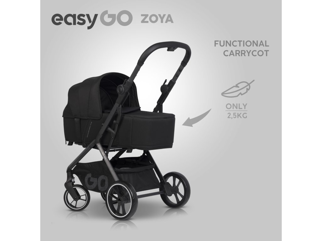 Designéři EasyGo se rozhodli vytvořit kočárek, jehož hlavní funkcí bude verze pro kočárek, a přenosná posýtka bude dostupná jako ekonomická možnost. Toto řešení je oprávněné, protože nosnou košeli používáme maximálně 6 měsíců a díky zaměření na funkčnost kočárku může kočárek sloužit našemu dítěti až dalších 42 měsíců. Přepravní koš ZOYA, navzdory své atraktivní ceně, je plně funkční.