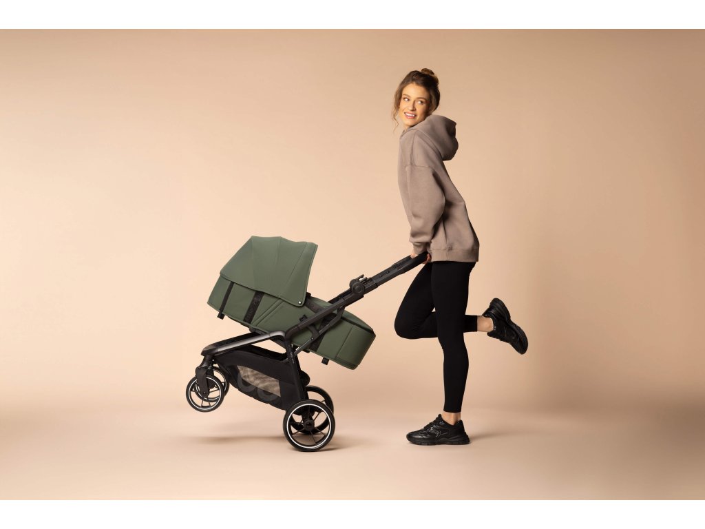 Stačí uvolnit mechanismus na madli a kočárek se automaticky sklopí do volné polohy. Po složení získáte pohodlný přístup k zábradlí, které slouží jako nosící rukojeť. Právě skládací systém činí ZOYA ideální volbou pro aktivní rodiče, kteří často skládají kočárek a nosí ho v autě.