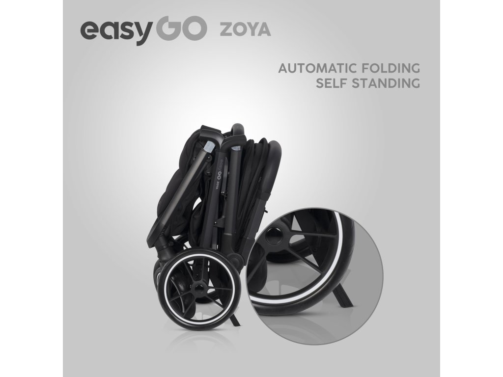 Můžete si také koupit sadu adaptérů na autosedačky pro kočárek ZOYA a vytvořit tak sadu 3v-1. Doporučujeme používat autosedačky BUZ, BUZ PRO nebo BUZ XTD od EasyGo, ale adaptéry vám také umožní instalovat širokou škálu sedadel od jiných populárních značek, které mají tzv. univerzální příslušenství (podrobnosti se zeptejte svého prodejce). EasyGo ZOYA ve verzi kočárku je kočárek s automatickým skládacím systémem.