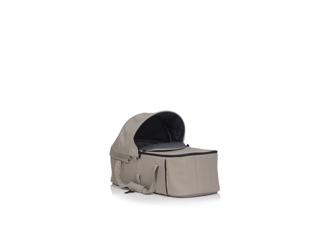 Měkká korbička ECHO má připínací sluneční budku. Horní kryt lze zcela demontovat, což bude hodit v teplých dnech. Vnitřek je vyroben z měkké bavlny ve světle šedé barvě. Korbička má také popruhy na přenášení.