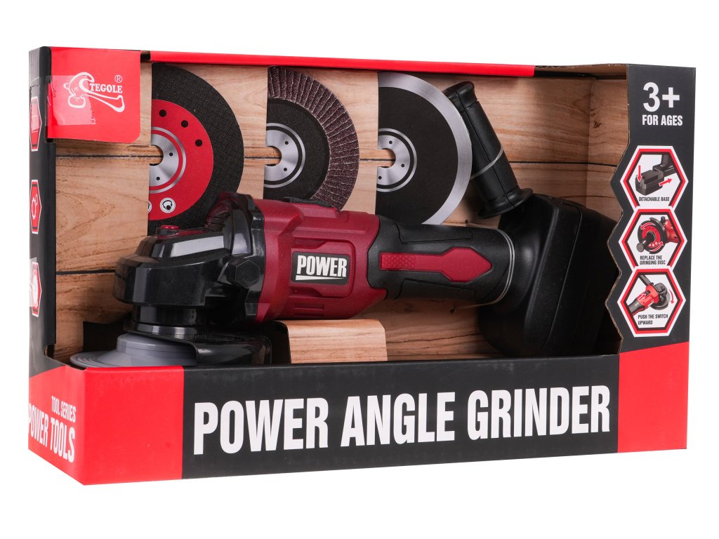 Cordless sander for children from three years of age. The grinder looks exactly like a real one, and all its functions are completely safe for children. When the child touches the disc with his hand, the disc stops rotating. The set also includes three interchangeable dial drawings with different endings. After moving the black button located on the top of the toy, the grinder starts turning the disc and making grinding sounds. The grinder has a removable battery and a handle that can be attached on the right or left side. The toy is powered by 2 x AA 1.5V batteries. Batteries not included. |