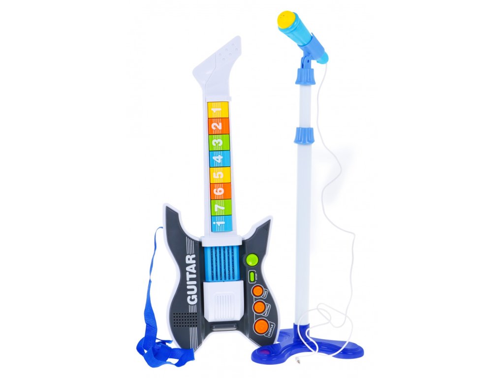 Dimensions | - guitar approx. 56 cm x 21 cm x 3 cm, - microphone on the stand approx. 80 cm x 20 cm, - packaging approx. 56.5 cm x 25 cm x 6 cm. |