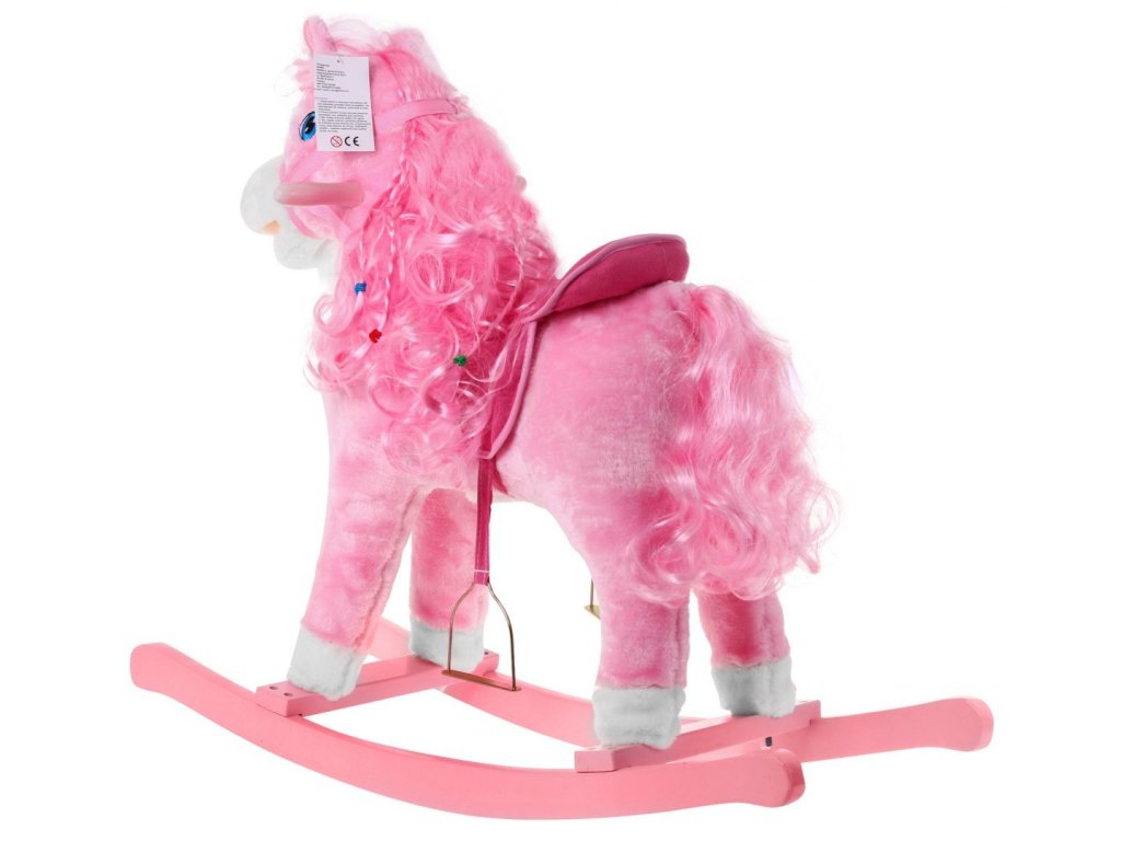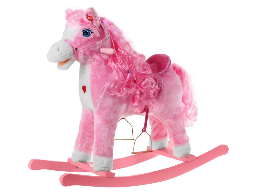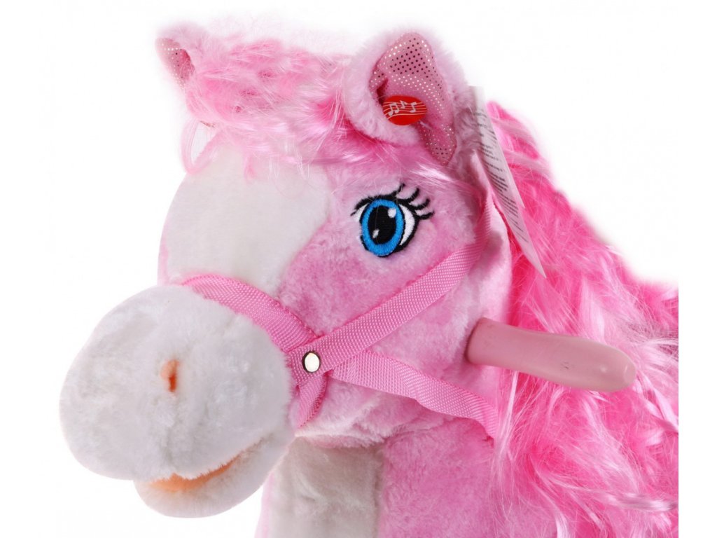 | This beautiful HORSE is a dream come true for every little princess. It is made of soft purple plush. It has a contoured saddle with stirrups. In addition, it has wooden handles and reins allowing safe play. His amazing, beautiful eyes encourage everyone to play. The horse has a beautiful, lush hideout on the mane, which distinguishes it from other horses and makes it unique. Its uniqueness is also emphasized by the magic, shining heart. On the right and left ears of Horse there are sensors that trigger sounds of neighing and gallop, move muzzle, making the game more interesting and more realistic. |