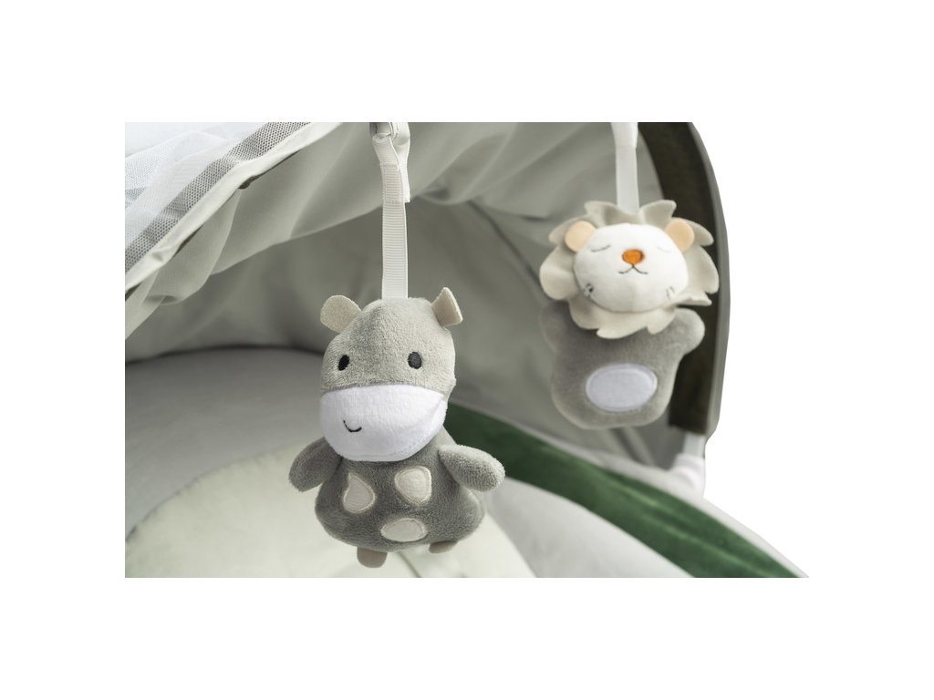 - Příslušenství: Otočná hračky na hrazdičce, které zabaví dítě během houpání.