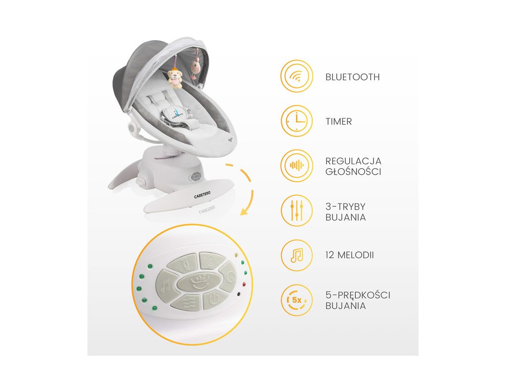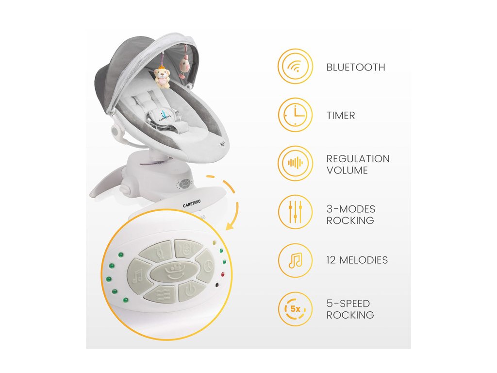 - Funkce houpání: automatické houpání s nastavitelnou intenzitou – 5 rychlostí houpání.