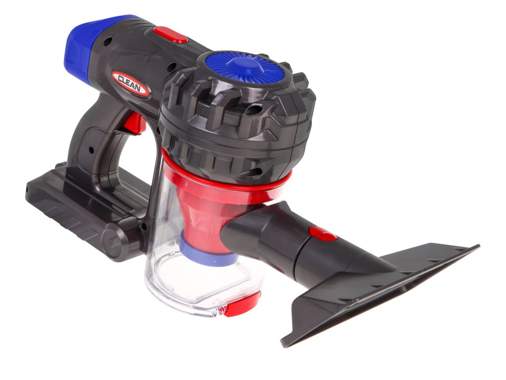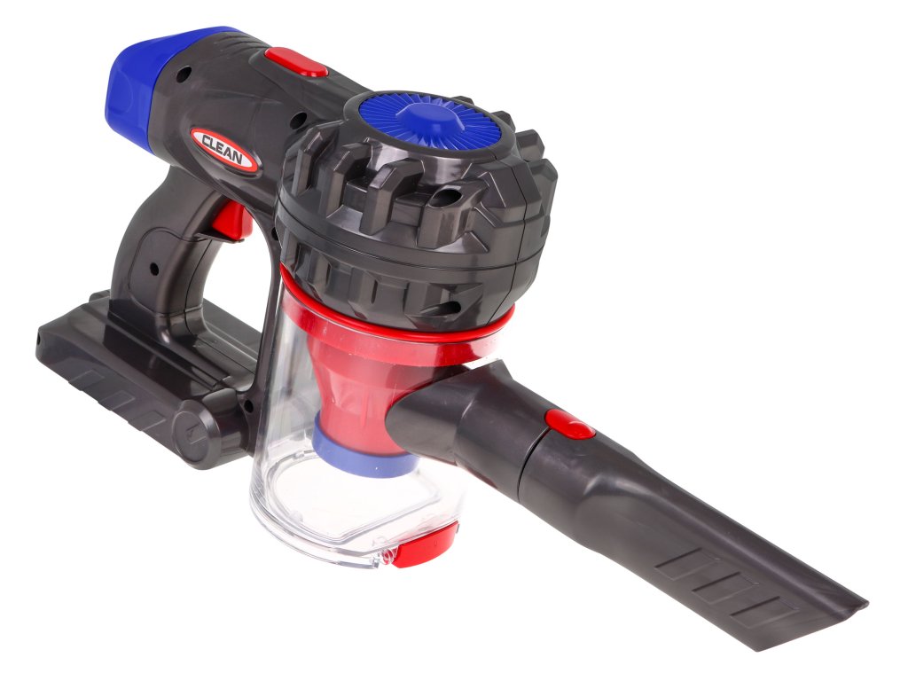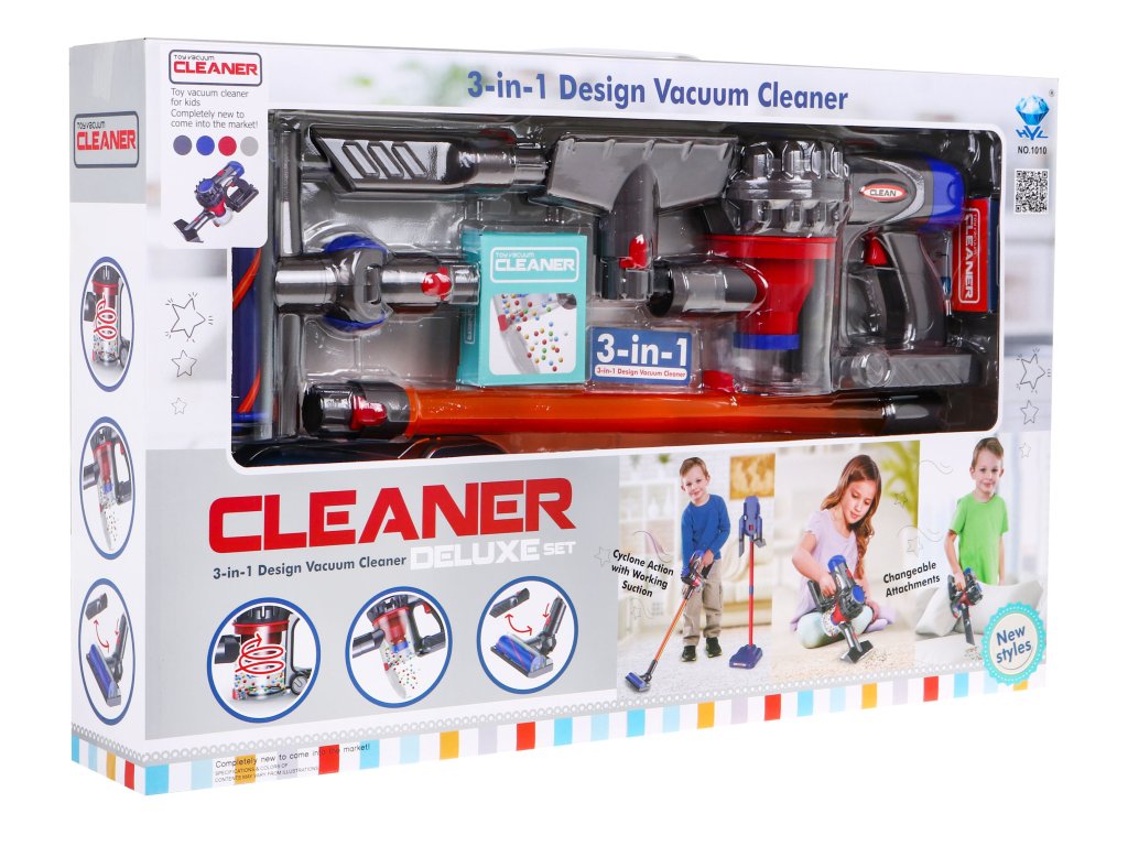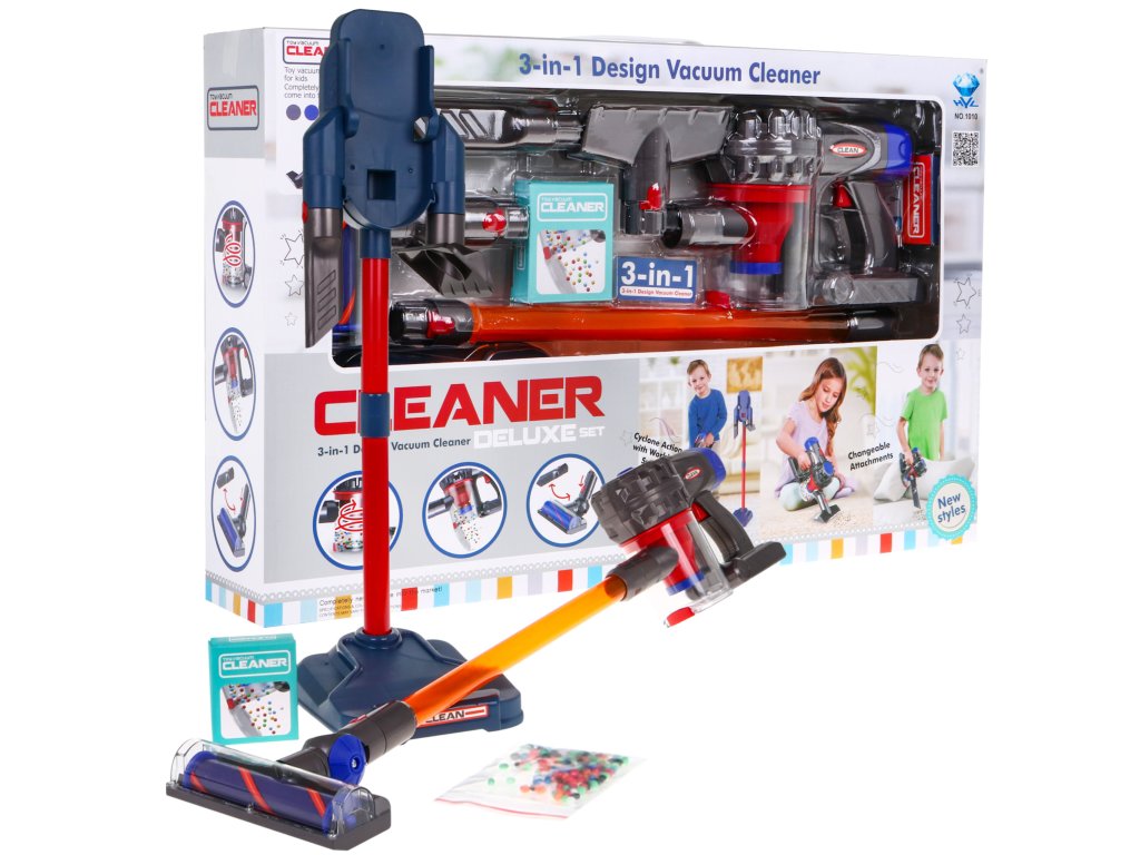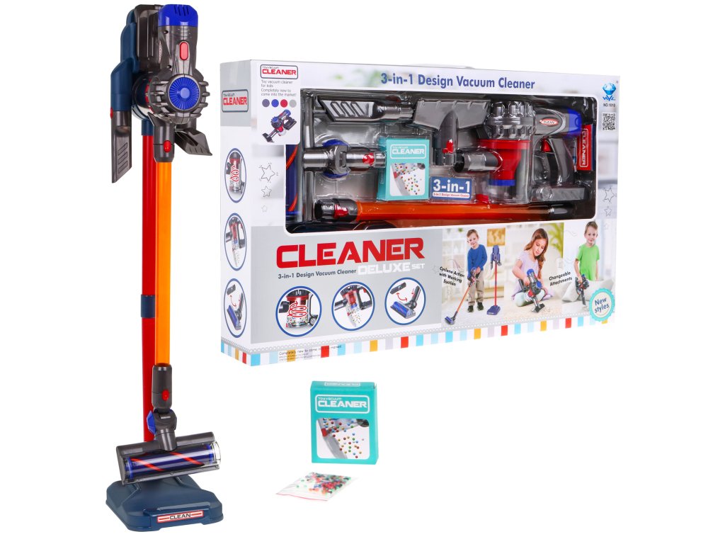 | A 3-in-1 vacuum cleaner with sound effects is a toy for children over three years of age. It teaches a child to keep their own room tidy. This toy is an exceptionally successful copy of a real upright vacuum cleaner. We can easily and quickly transform it into a small handheld vacuum cleaner. The device makes sucking noises and pulls in the polystyrene balls included in the set, which, additionally, swirl after being pulled into the tank. The toy is powered by 3 x AA 1.5V batteries (not included). |