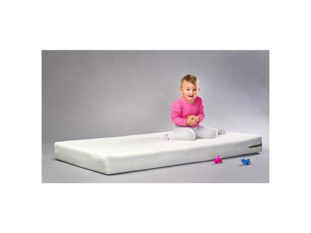 Nová latexová pěna-kokosová matrace o tloušťce cca 12 cm zajistí pohodlí a klidný spánek i těm nejmenším dětem. Latexová pěna se díky své pružnosti dokonale přizpůsobuje tvaru těla. Správná perforace latexové pěny a zvlnění polyuretanu zajišťuje vynikající cirkulaci vzduchu. Ekologická kokosová vložka matrace neabsorbuje prach a poskytuje vhodné mikroklima vedle pokožky dítěte. Potah z tkaniny Aloe Vera je extrémně jemný na dotek a má antialergické a antibakteriální vlastnosti.