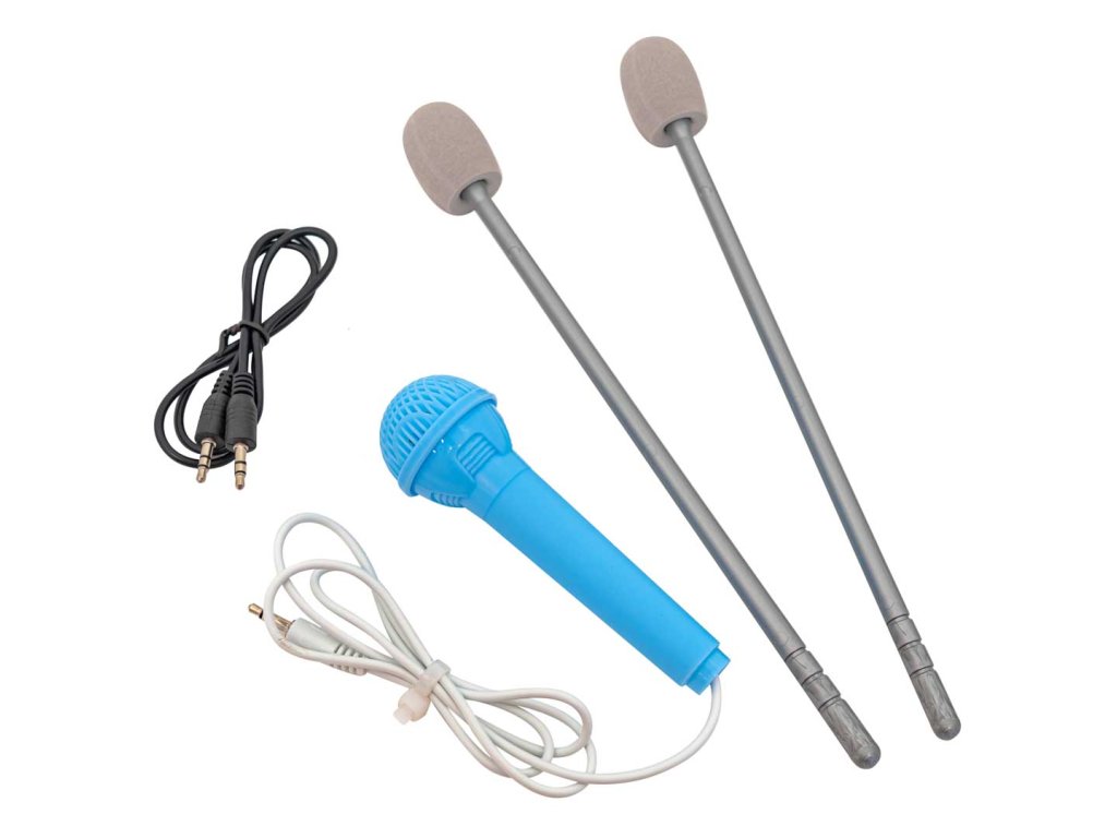 – drums with 5 drums, a set of sticks, a microphone, a keyboard, – Mini Jack cable, – stool. |