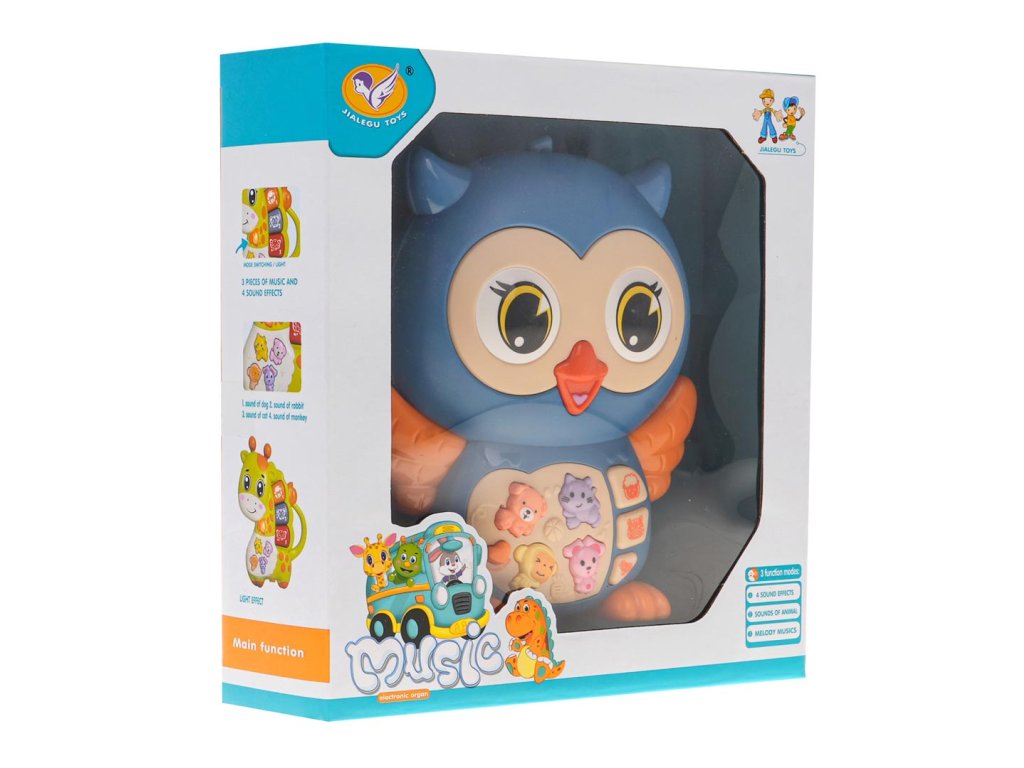 - intended for children from 6 months of age, - made of the best quality plastic in vivid colors, - safe, no sharp edges, - resistant to falls, - lighting effects: illuminated owl wings, - sound effects: * animal sounds mode: dog, cat, monkey, sheep, tiger, elephant, * mode with sounds: melodies, Do-Re-Mi sounds. |