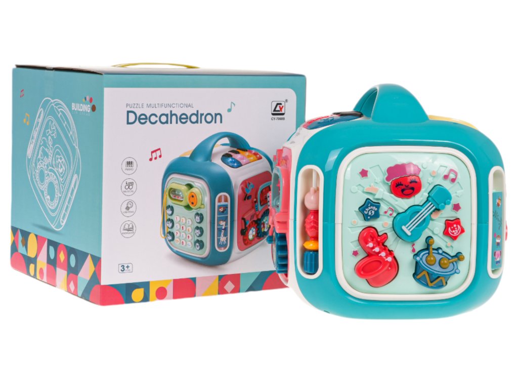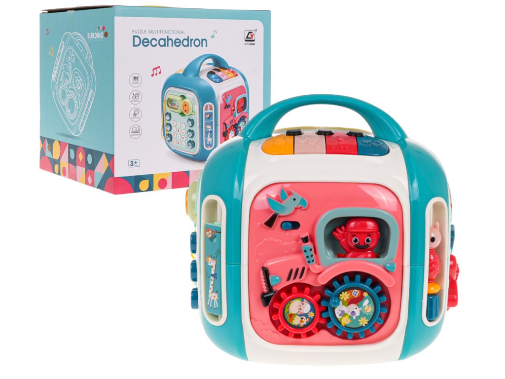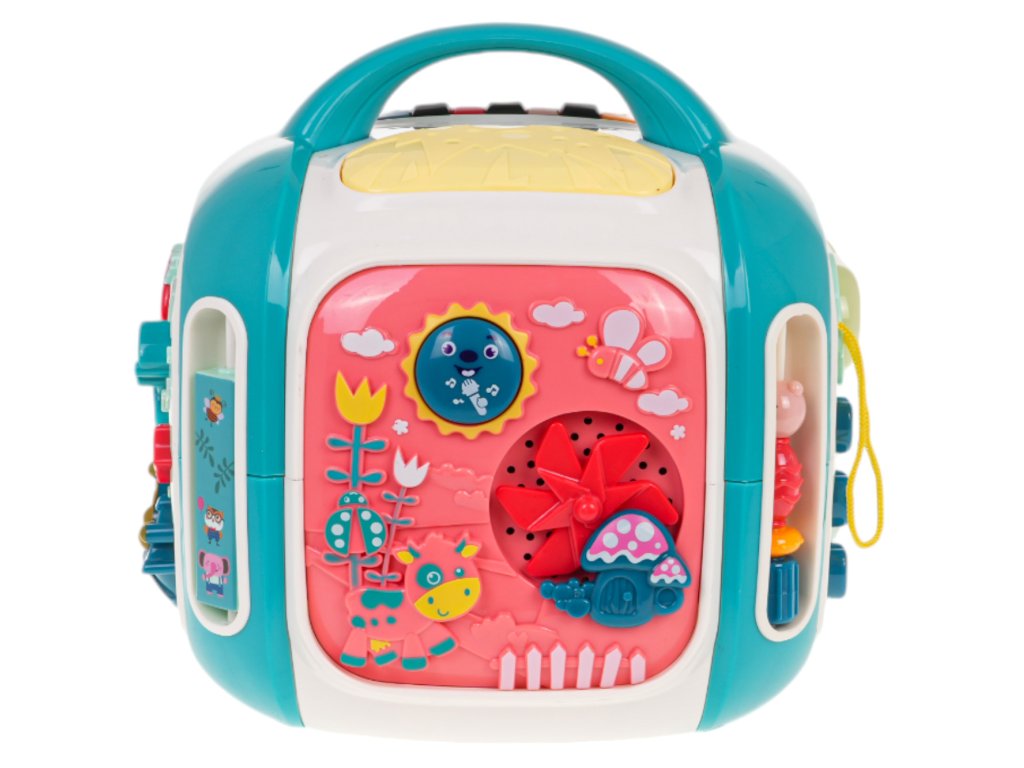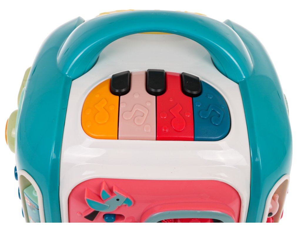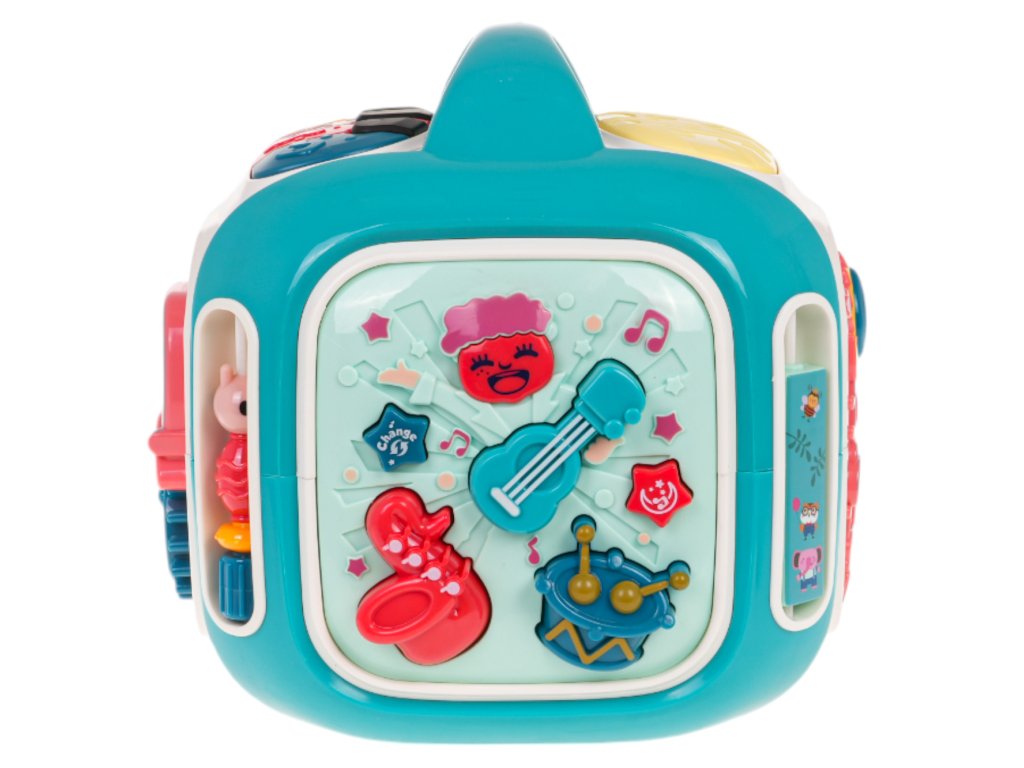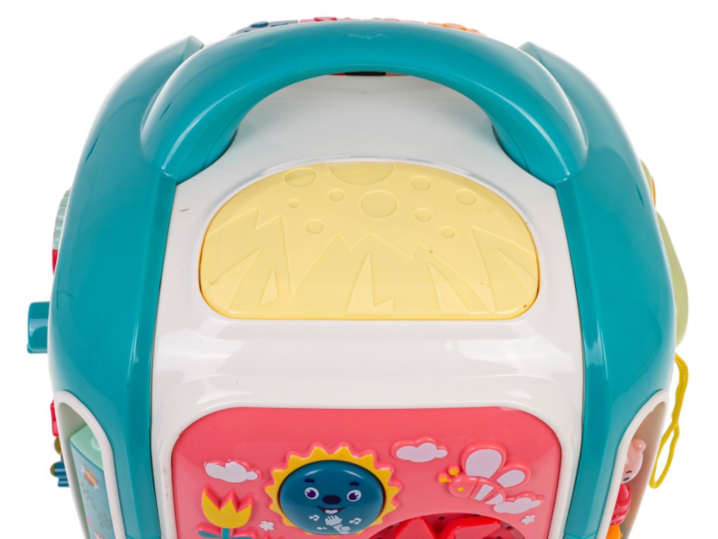 Interactive box with sound and light effects for children from 3 years of age. Each wall of the box will provide the child with a lot of fun and interactive play. Various sound and light effects and a wealth of colors will attract the baby's attention and encourage them to play. The toy is powered by 3 x AA 1.5 V batteries (not included).