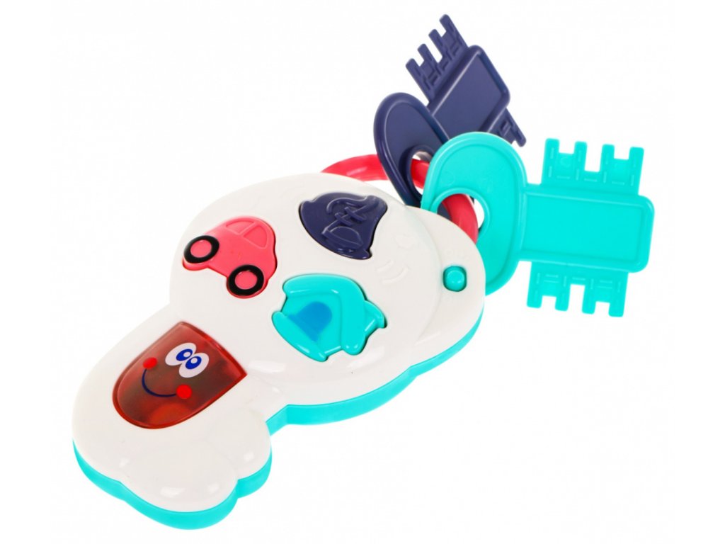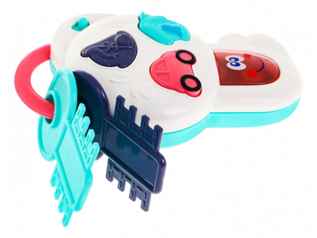 | Interactive keys with music, melodies and flashing lights are a proposal for children from 12 months of age. The toy has a positive effect on the development of the baby's auditory and visual perception. There are three music buttons on the key: house, car, music note. After pressing the button with the house, you can hear the voice of a bell, a dog barking, the sound of an intercom, a calm melody, a light flashes. The toy car button activates the sound of opening and closing the car, the sound of the engine, a cheerful melody and the flashing of the light. The note button hides melodies and a blinking light. There are also 2 smaller plastic keys attached to the key. The toy is powered by 2 x AA 1.5V batteries, which are included in the set. |