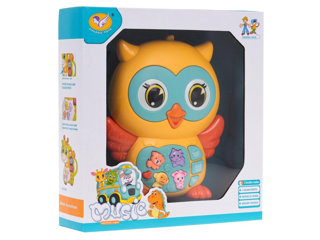 - intended for children from 6 months of age, - made of the best quality plastic in vivid colors, - safe, no sharp edges, - resistant to falls, - lighting effects: illuminated owl wings, - sound effects: * animal sounds mode: dog, cat, monkey, sheep, tiger, elephant, * mode with sounds: melodies, Do-Re-Mi sounds. |