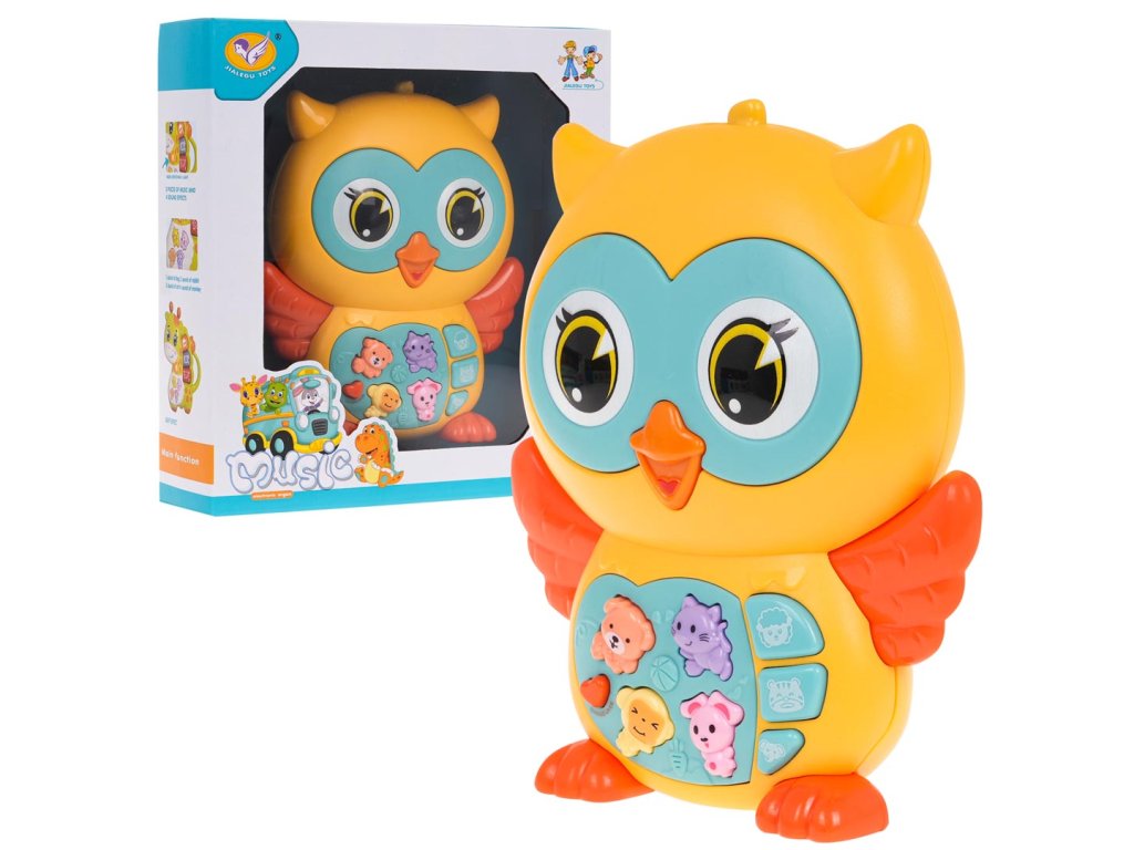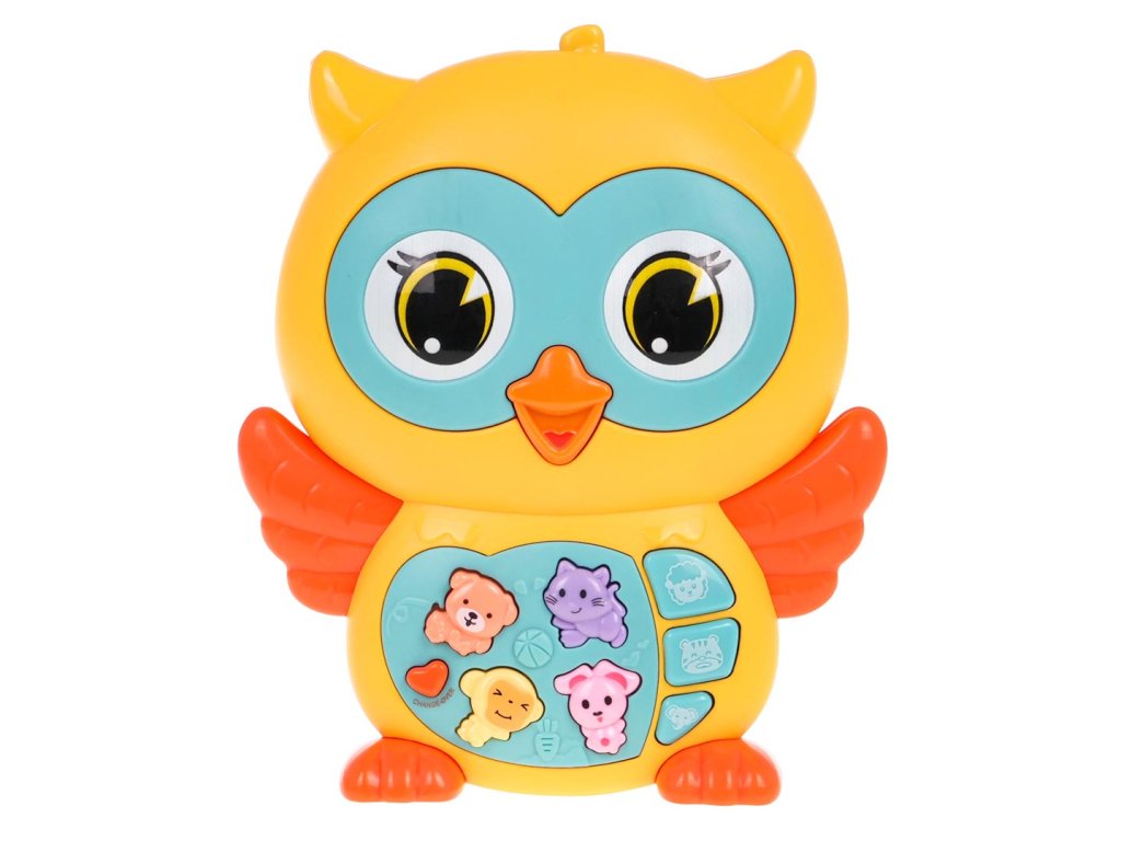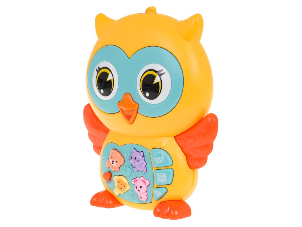 Interactive owl with sound and light function for children from 6 months of age. The owl is made of the best quality plastic, is impact resistant and safe for babies, has no sharp edges. The owl is made in vivid colors, attracting the child's attention and encouraging to play. On the owl's belly there is a panel with buttons that activate animal sounds (in the first mode), melodies, Do-Re-Mi sounds (in the second mode) and light effects in the form of twinkling lights on the owl's wings. Modes are changed with a heart-shaped button. The toy has volume control. It is powered by 2 x AA 1.5 V batteries (not included)