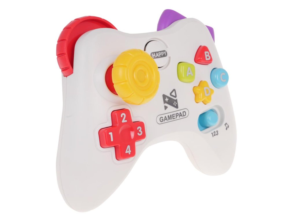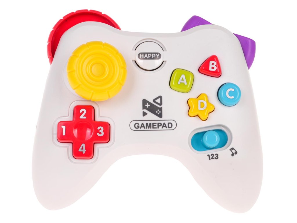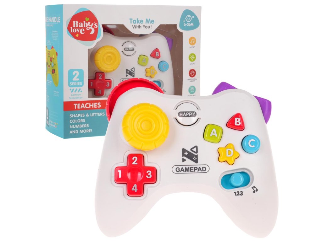 Interactive pad with sound and light effects for the youngest from 6 months of age. The pad is made of the best quality plastic and is completely safe for the baby. Each button hides twinkling lights and sounds. The pad can work in two modes: musical and sound or educational. In educational mode, the child learns letters, numbers, shapes and colors. At the top of the pad, there are two elements for spinning, which, when moving, make rattling sounds. The toy is powered by 3 x 1.5 V AAA batteries, which are not included in the set.