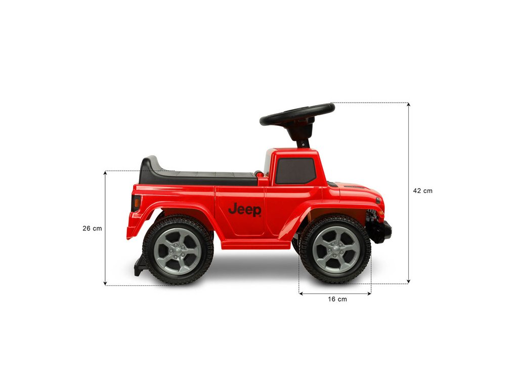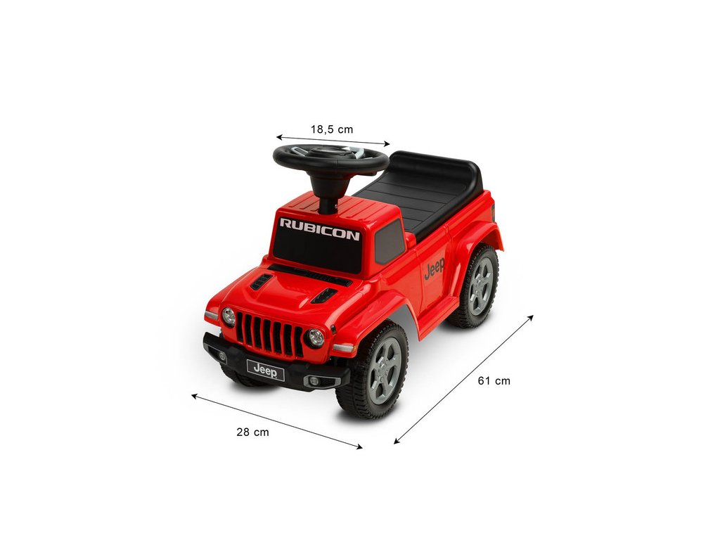 Dětská jízda Toyz Jeep Rubicon kombinuje terénní design a vysoce kvalitní zpracování. Pomůže naučit se samostatně pohybovat a při hraní poskytne spoustu zábavy. Ride-on má volant se dvěma tlačítky, která vydávají zvuky. Pod sedadlem je úložný prostor pro hračky.