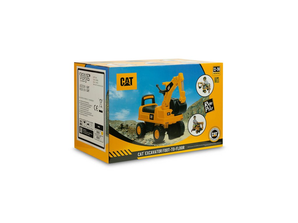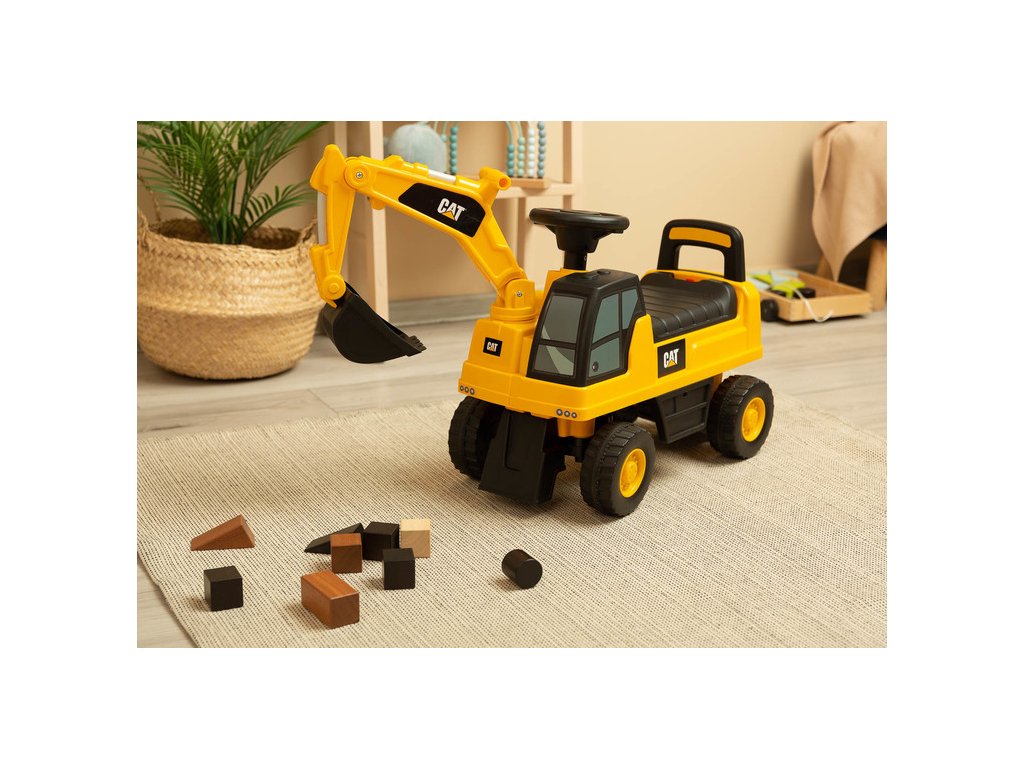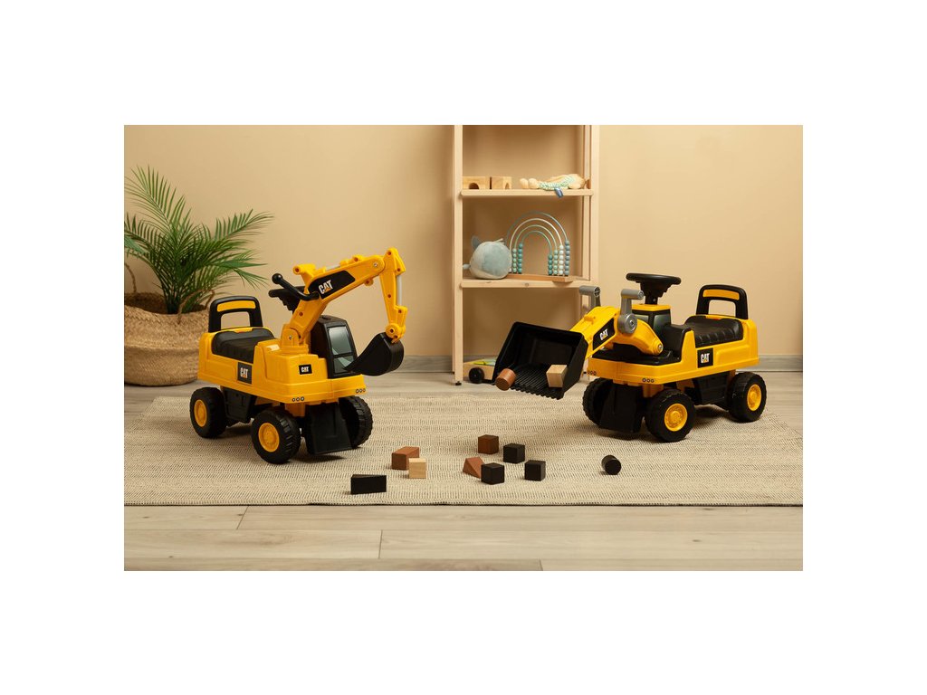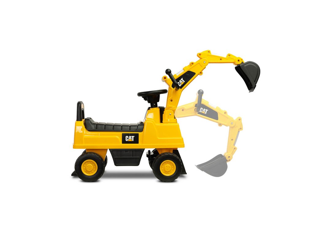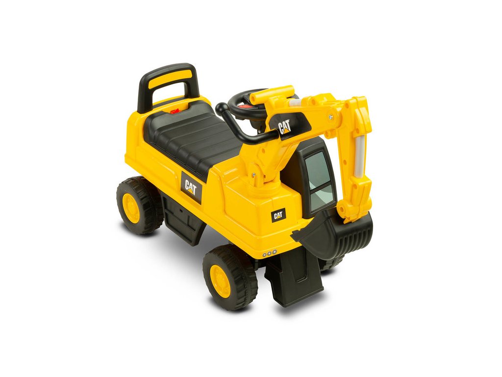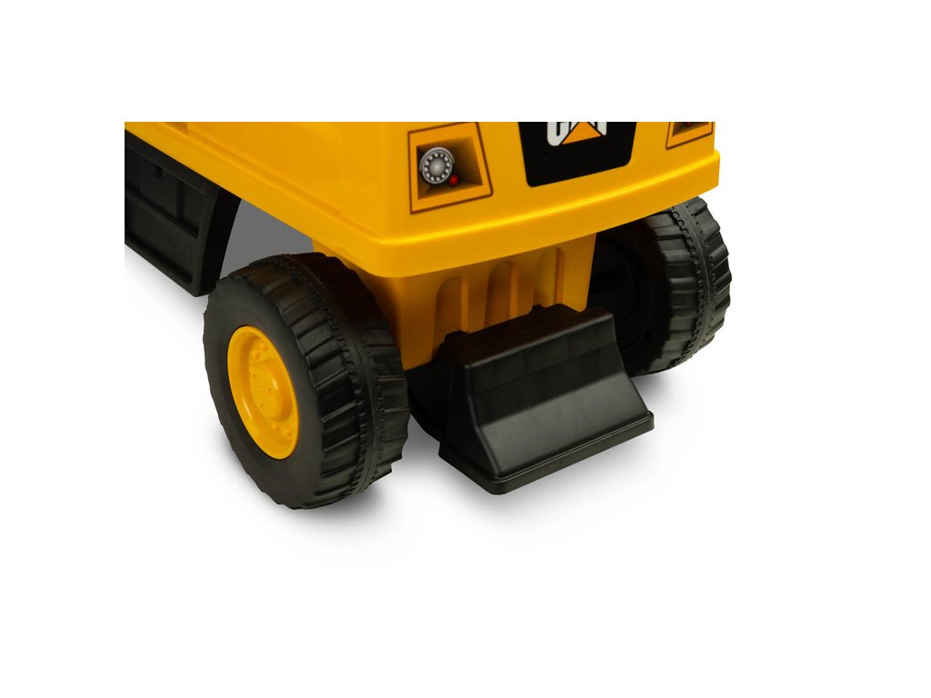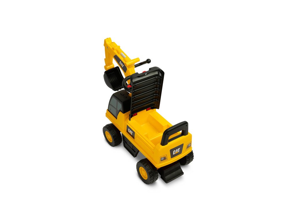 Jedinečný vzhled díky licenci značky CAT Volant s klaksonem Pohyblivá lžíce bagru Prostorný úložný prostor pod sedadlem Otočná přední kola Ochrana proti převrácení Technické údaje: