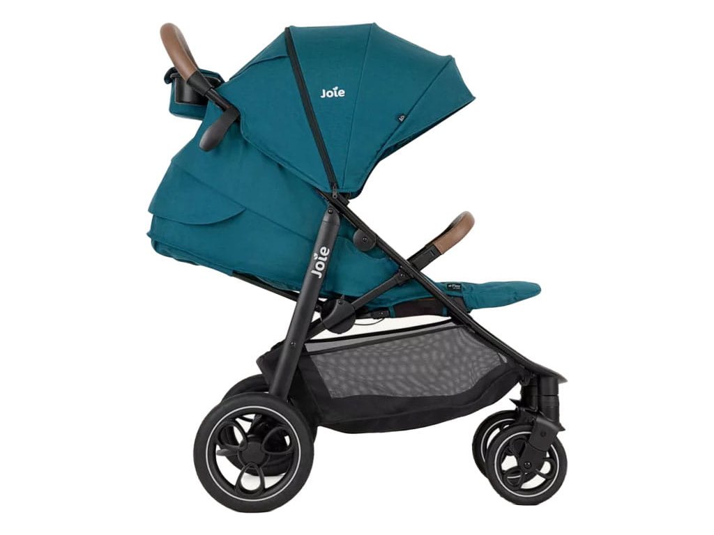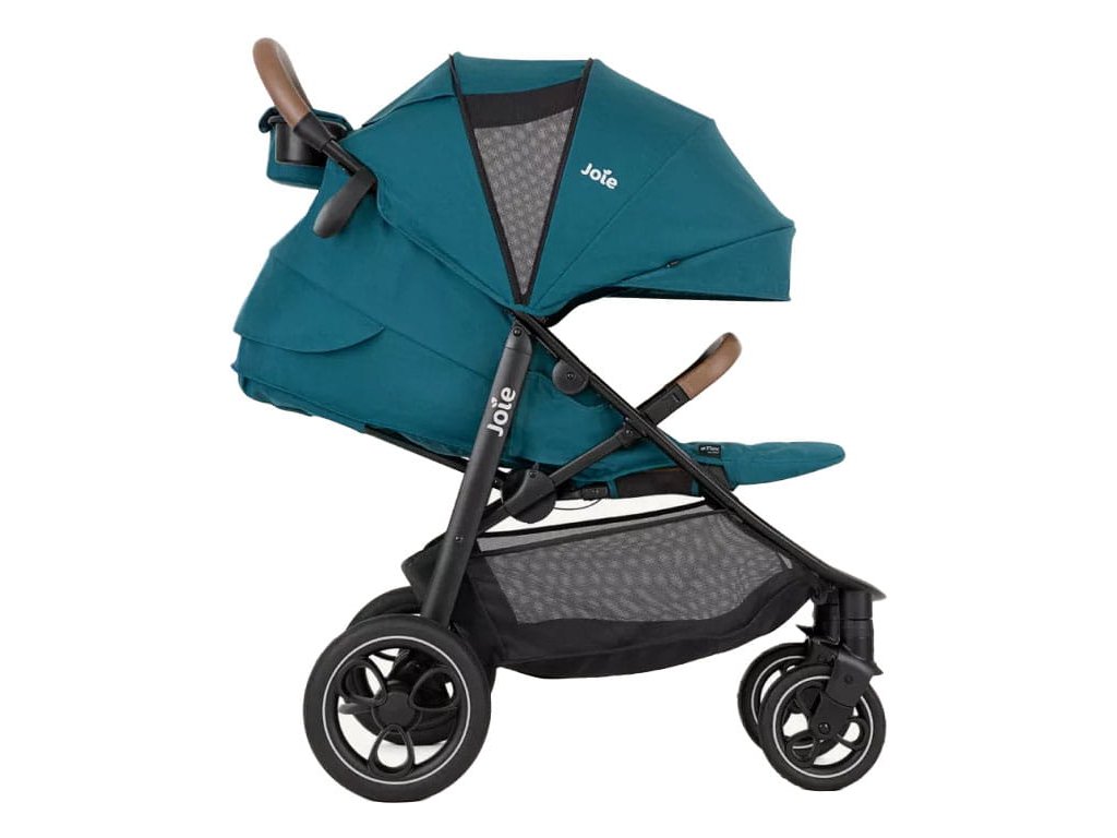Joie Litetrax Pro nabízí polohovatelnou opěrku zad a nastavitelnou rukojeť, což zajišťuje pohodlnou jízdu pro rodiče i dítě. Velká stříška chrání před sluncem a nepříznivým počasím.