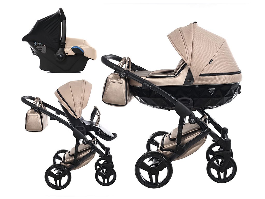 Pohodlný kočárek s ultralehkou konstrukcí a otočnými bezdušovými koly je ideální pro každou procházku. Další výhodou je, že materiál chrání před UV paprsky a zároveň je voděodolná. DIAMOND má prostornou korbičku a konstrukci vybavenou pro chůzi v každém ročním období. Elegantní konstrukce je vybavena dodatečně nastavitelnou absorpční nárazů, která zajišťuje hladkost při jízdě, když překážkám.
