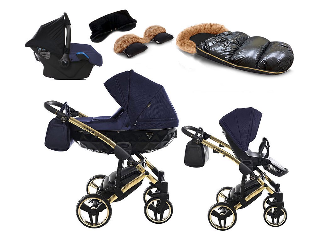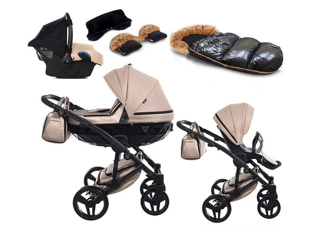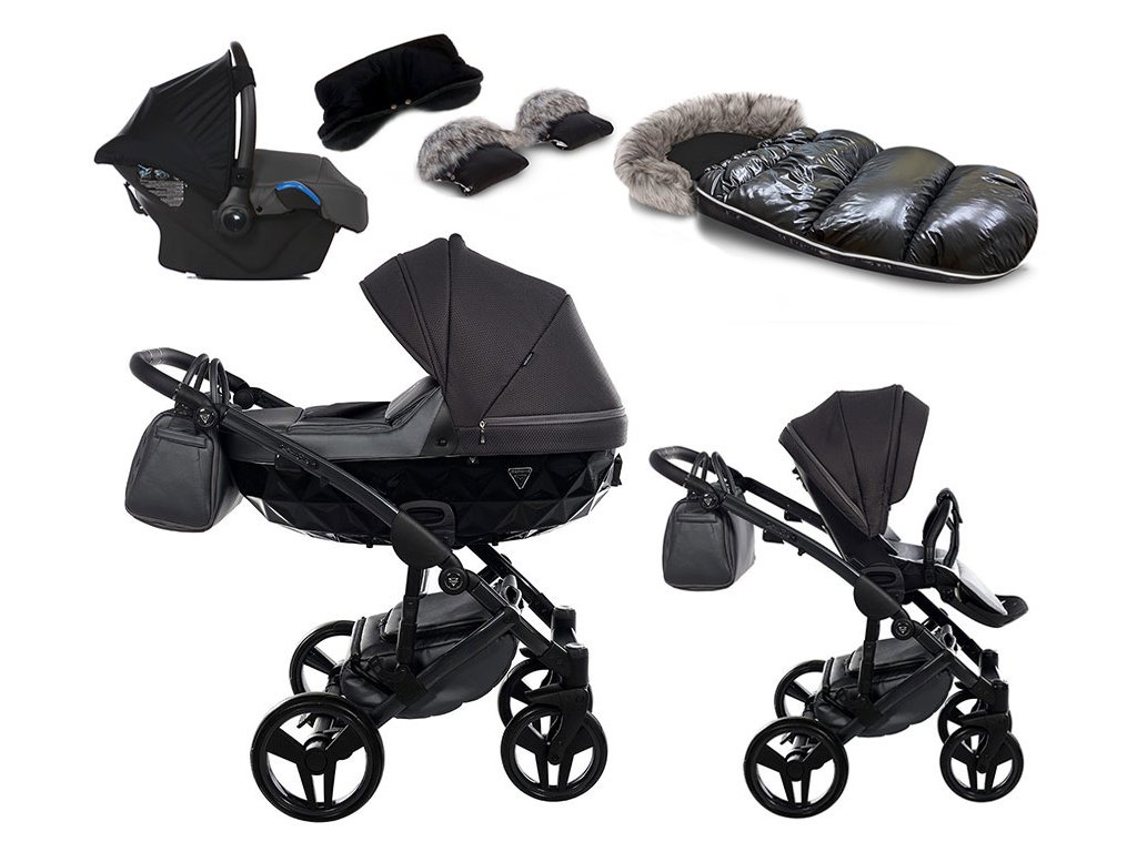 Sada obsahuje:    podvozek + hlubokou korbu + sportovní sedačku s nánožníkem + přebalovací tašku + pláštěnku + moskytieru + kšíry + přebalovací podložku + držák + autosedačku JUNAMA BABYSCHILD včetně adaptérů + zimní prodlužovací fusak + nepromokavý rukávník nebo rukavice s kožíškem