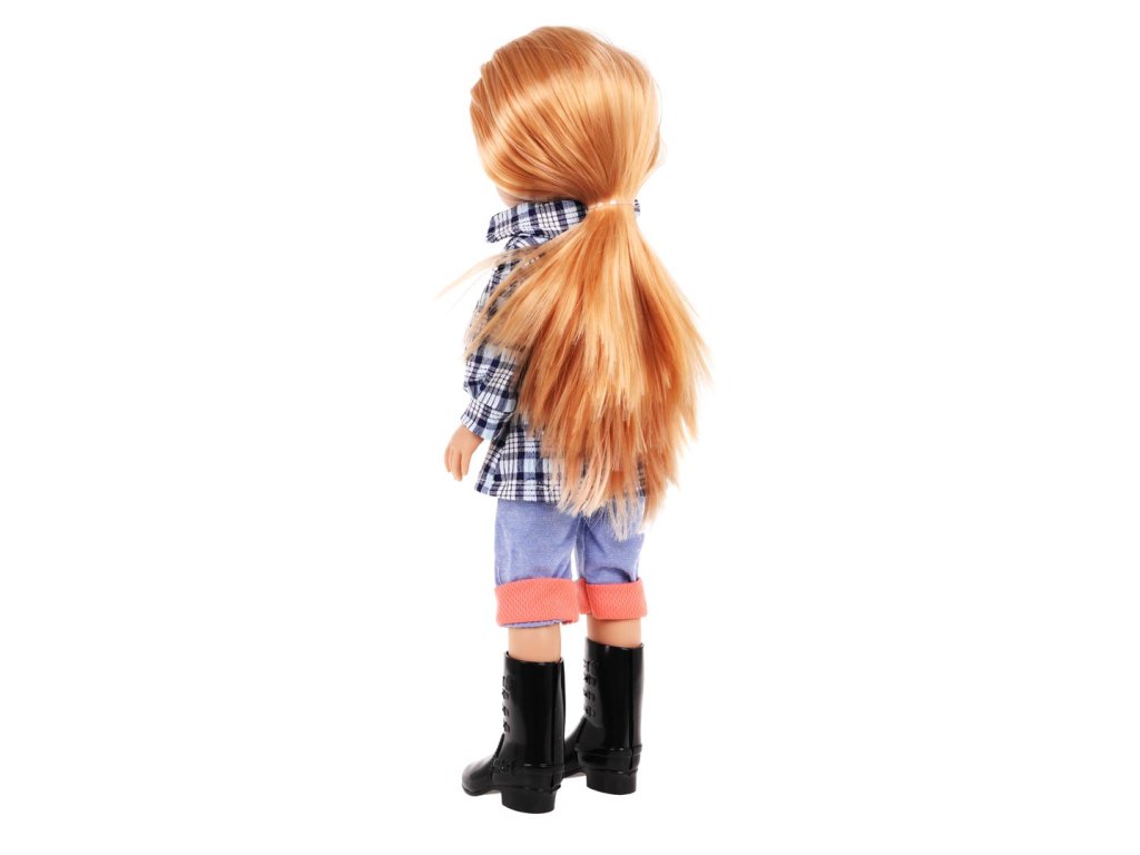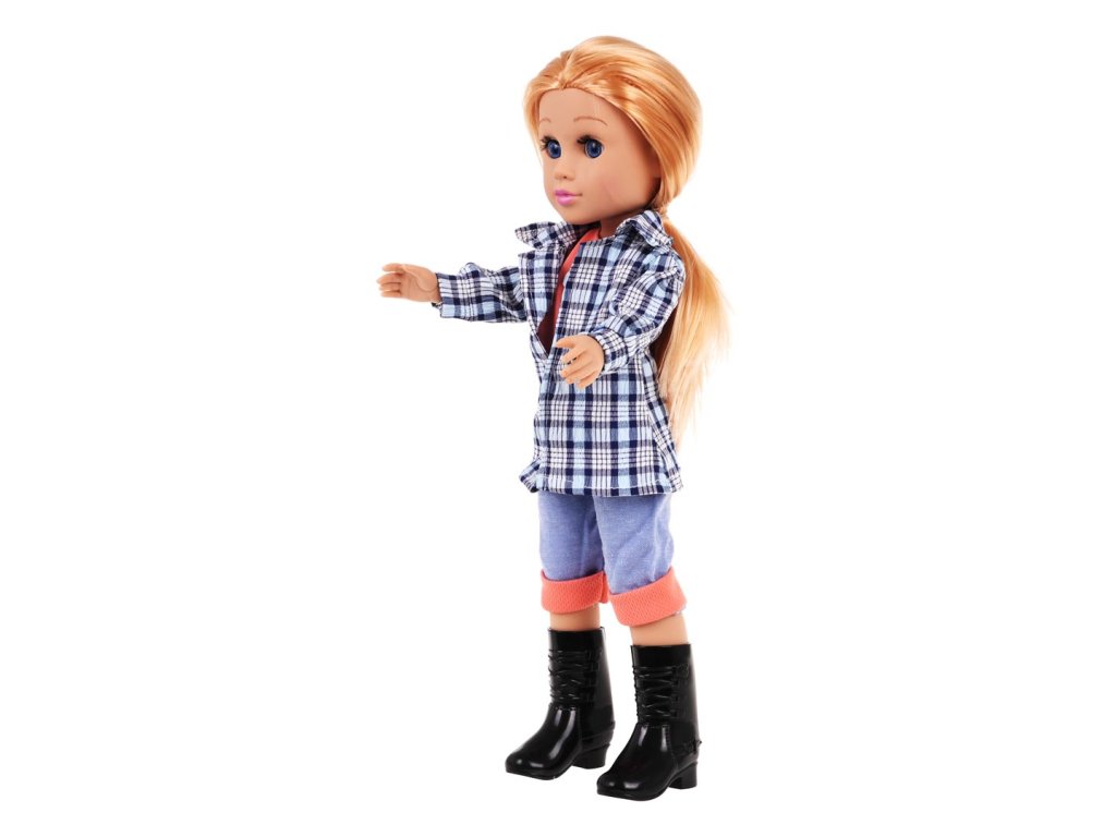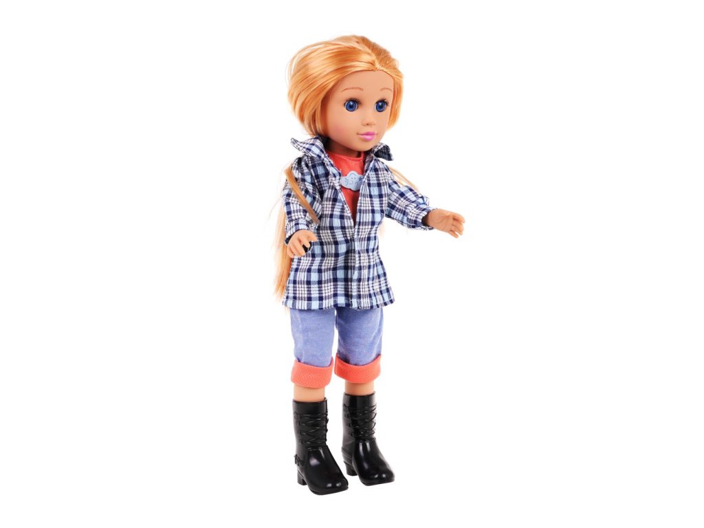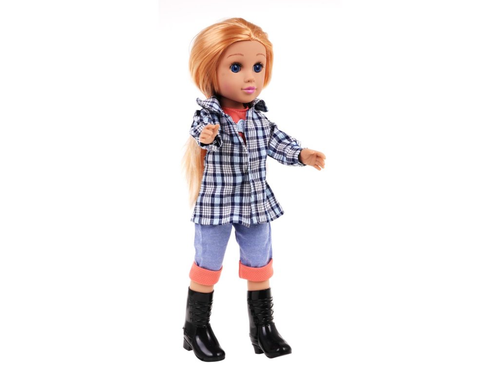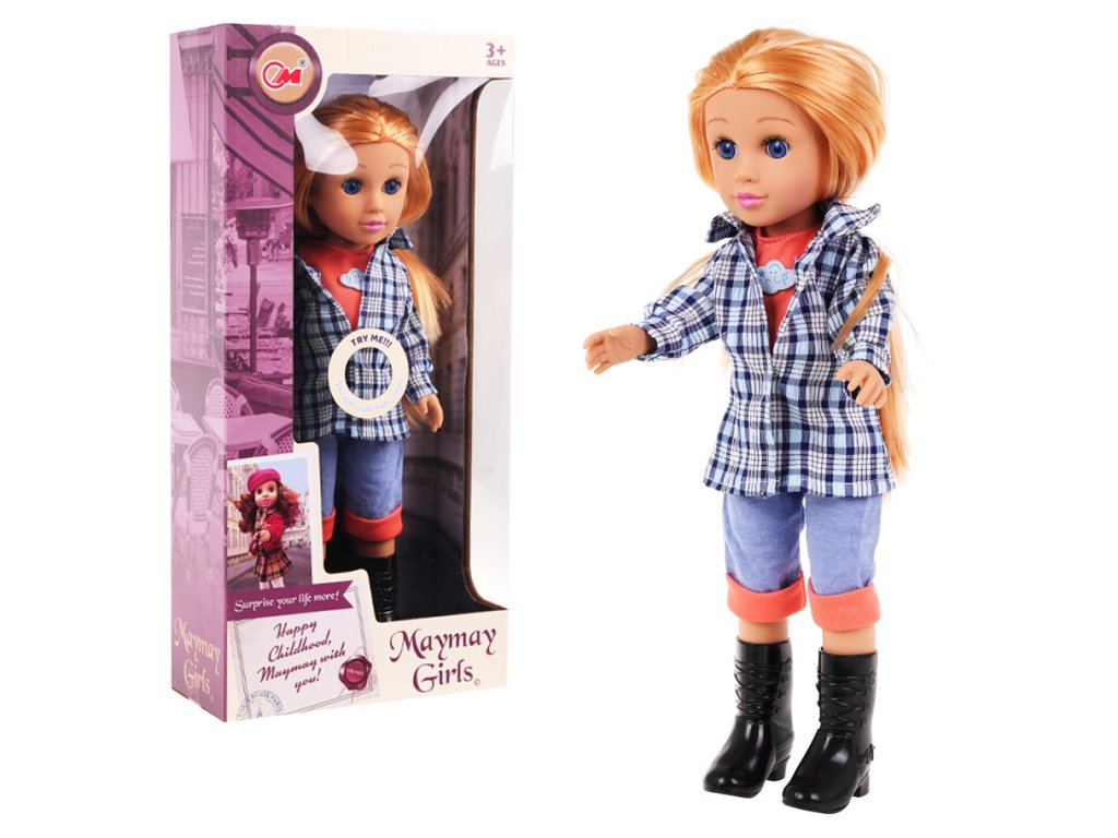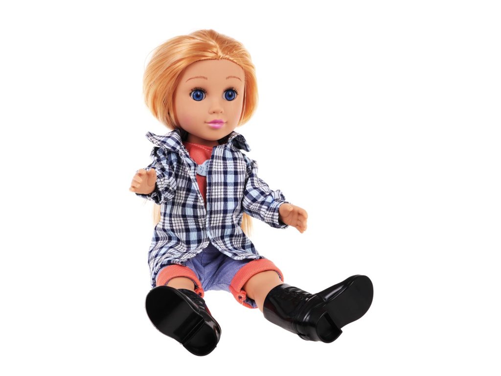 A beautiful doll for a child aged 3 and up. The doll is perfectly finished, with attention to every detail and completely safe for a child. She is dressed in a blouse, shirt, trousers and shoes. We can take off the clothes and change the doll into other ones. Movable legs and arms make changing easier. There is a button on the doll's tummy, when pressed, you can hear a cheerful song. The toy is powered by GR2032 batteries (included).