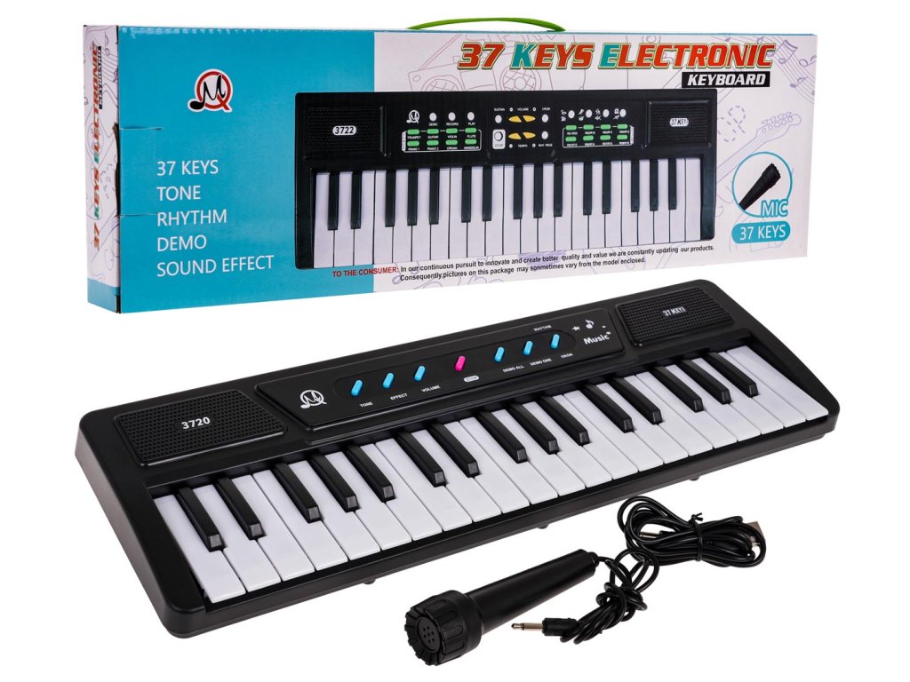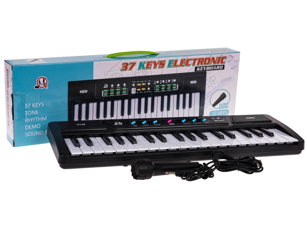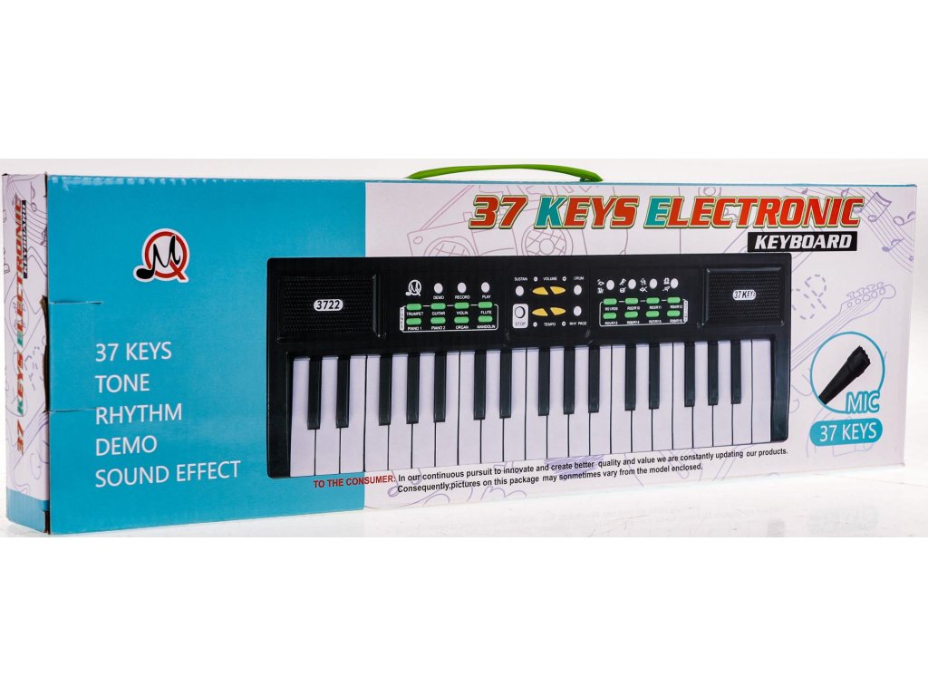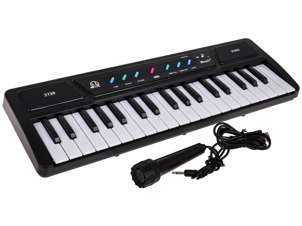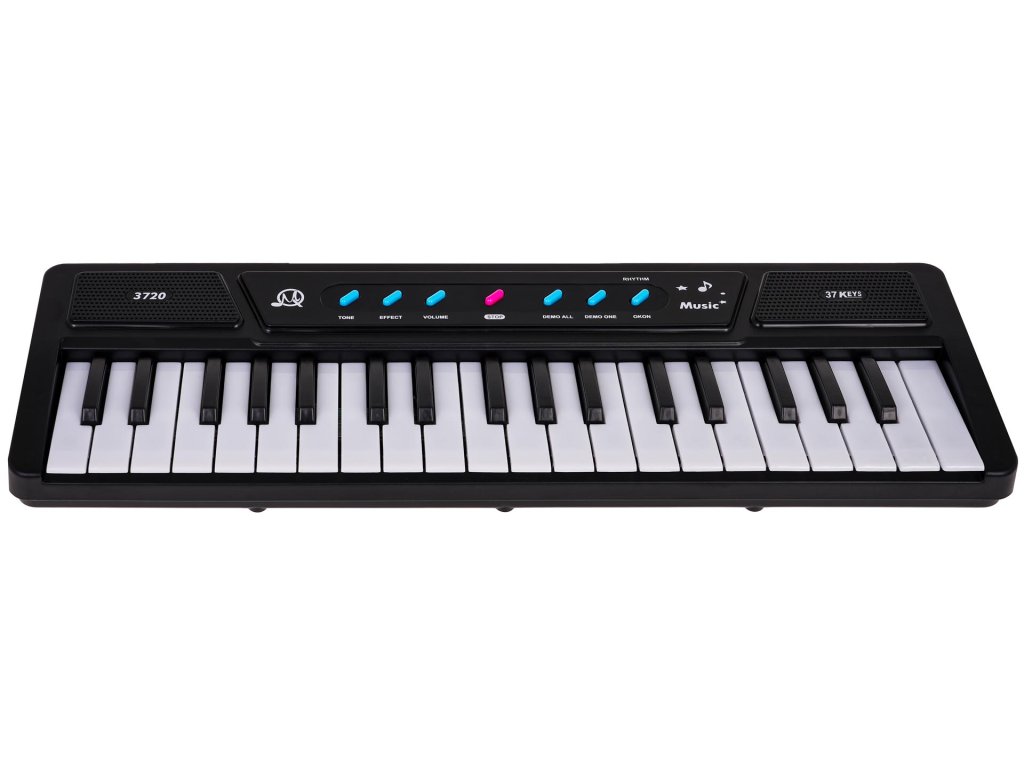 Keyboard, a musical toy for children over 3 years of age. Keyboard is a multifunctional educational toy that simultaneously develops imagination, musical skills, sense of rhythm, sense of hearing, and also allows to awaken the musical passion of our little virtuosos. Keyboard is a proposal for all children curious about the world of music and sounds. KEYBOARD has: - power on/off button, - musical keyboard (22 white keys + 15 black keys), - demo button, - tone button, - volume control buttons, - stop button, - microphone output, - loudspeaker, - microphone, - USB cable, INSTRUMENT POWER SUPPLY (interchangeable): 1. via the network – USB cable included with the keyboard, 2. AA batteries (3 x 1.5V - not included). |