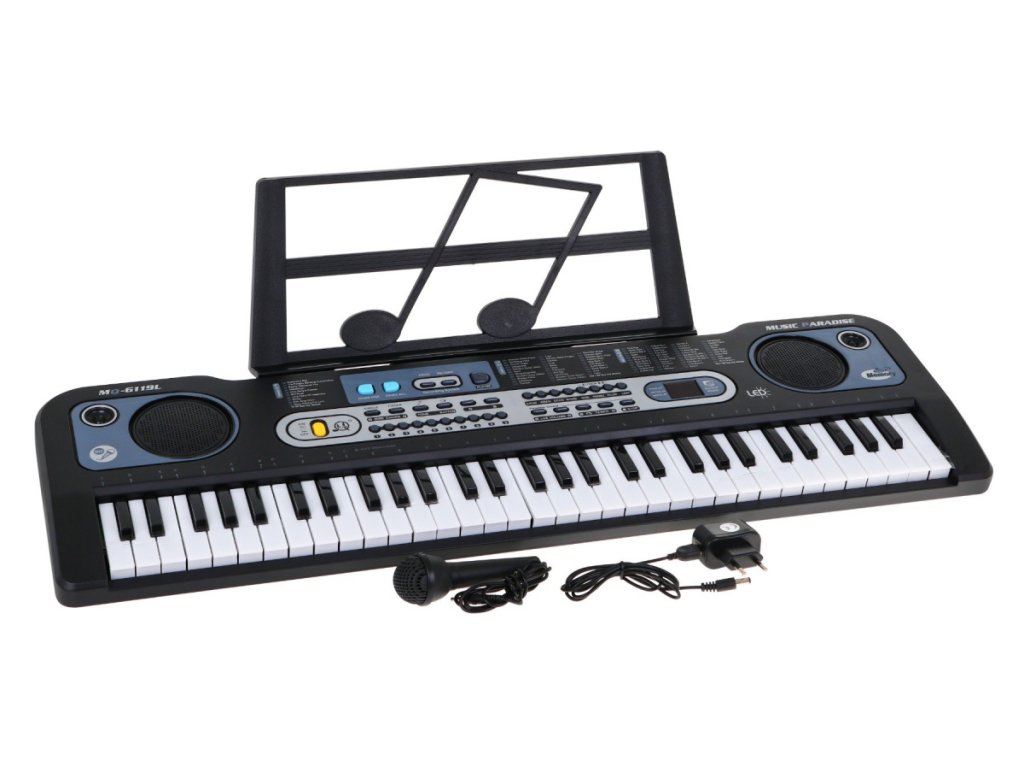 | Keyboard is an offer for all children interested in the world of music and sounds.The synthesizer we propose is intended for children from 5 years of age.The suggested age for a child is 5-8 years.It is powered in two ways, with electricity with a voltage of 220V-50Hz - power adapter included, or AA 6 x 1.5V batteries - not included.A unique advantage of this model are the backlit keys. |