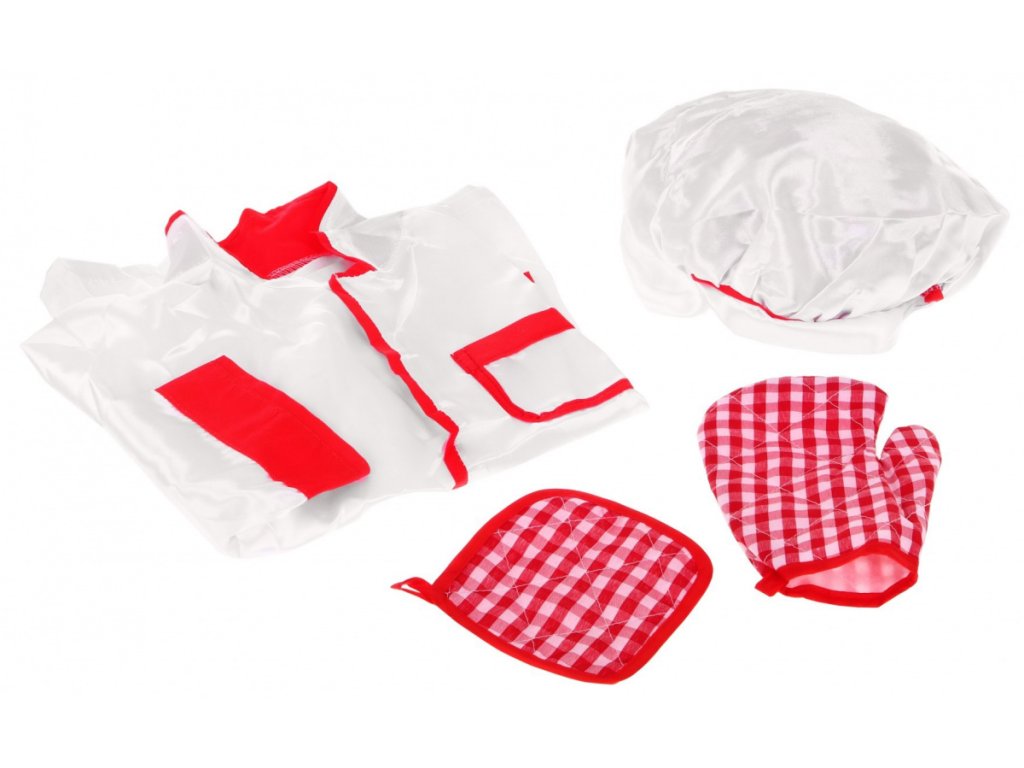 | - frying pan, pots, overlays, plates (diameter) about 10 cm, - a larger pot (with handles) of approx. 13 cm x 6 cm, - a frying pan with a handle of approx. 16.5 cm x 2.5 cm, - teaspoons approx. 11 cm, - cups about 6.5 cm x 4 cm, - stand approx. 19 cm x 21.5 cm, - kitchen utensils, approx. 13.5 cm, - chef's clothes from 3 to 5-6 years old, - packaging about 40.5 cm x 39.5 cm x 11 cm. |