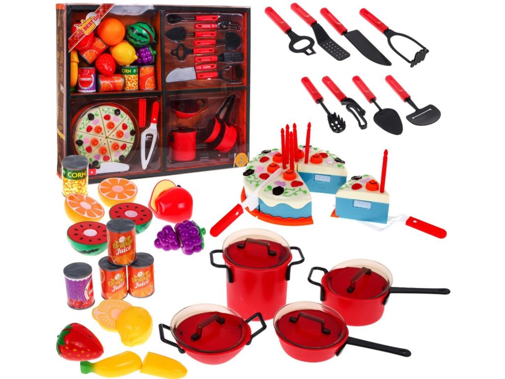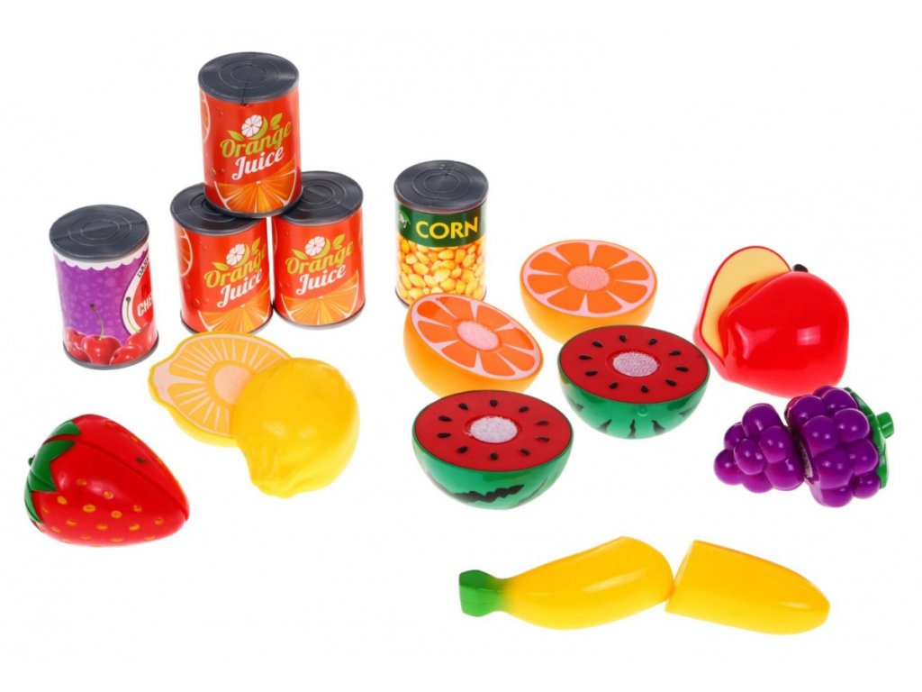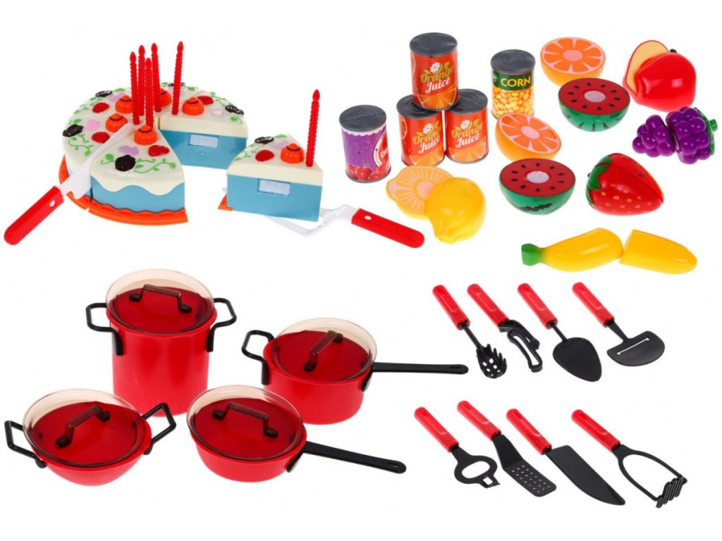 - a large pot with a lid approx. 8 cm x 12 cm, - pot with lid approx. 17 cm x 4 cm, - a pot with a lid, approx. 15 cm x 4 cm, - pot with lid approx. 11 cm x 4 cm - meat spoon approx. 13 cm x 2.5 cm, - pestle approx. 13 cm x 4.5 cm, - knife, cleaver approx. 14.5 cm x 3.5 cm, - knife approx. 13.5 cm x 2.5 cm, - ladle approx. 14 cm x 2.5 cm, - decorative spoon approx. 14 cm x 3.5 cm, - shoulder approx. 13 cm x 5 cm, - cake spatula approx. 17 cm x 4 cm, - a peeler approx. 12 cm x 2 cm, - opener approx. 12.5 cm x 4.5 cm, - 6 x cake candles approx. 6.5 cm x 0.5 cm, - Velcro cake approx. 15 cm x 5 cm, - 3 x cans of orange juice about 5.5 cm x 4 cm, - a can of cherry juice about 5.5 cm x 4 cm, - a can of corn about 5.5 cm x 4 cm, - Velcro grape approx. 8 cm x 5 cm, - orange with velcro, approx. 6 cm x 7 cm, - Velcro banana approx. 12 cm x 3 cm, - apple with Velcro, approx. 6.5 cm x 6 cm, - lemon with Velcro, approx. 8 cm x 5 cm, - strawberry with Velcro, approx. 7 cm x 5 cm, - watermelon with Velcro, approx. 7 cm x 6.5 cm. | |