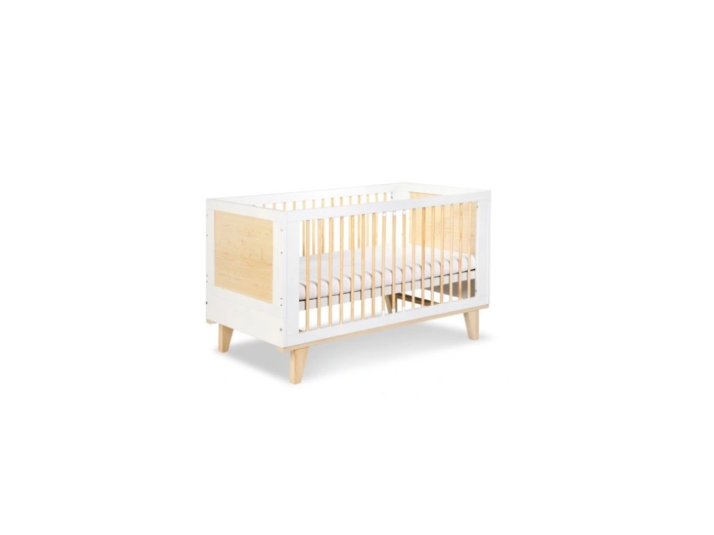 Postýlka LYDIA je poctou boho stylu. Kombinace borovice a bílé je ideální pro ty, kteří milují světlý nábytek a sledují převládající trendy. Odnímatelné borovicové příčky, tři úrovně nastavení dna postýlky a masivní borovicové nohy zajistí pohodlí a bezpečí vašeho batolete.Vnější rozměr (cm): 145 x 85 x 76