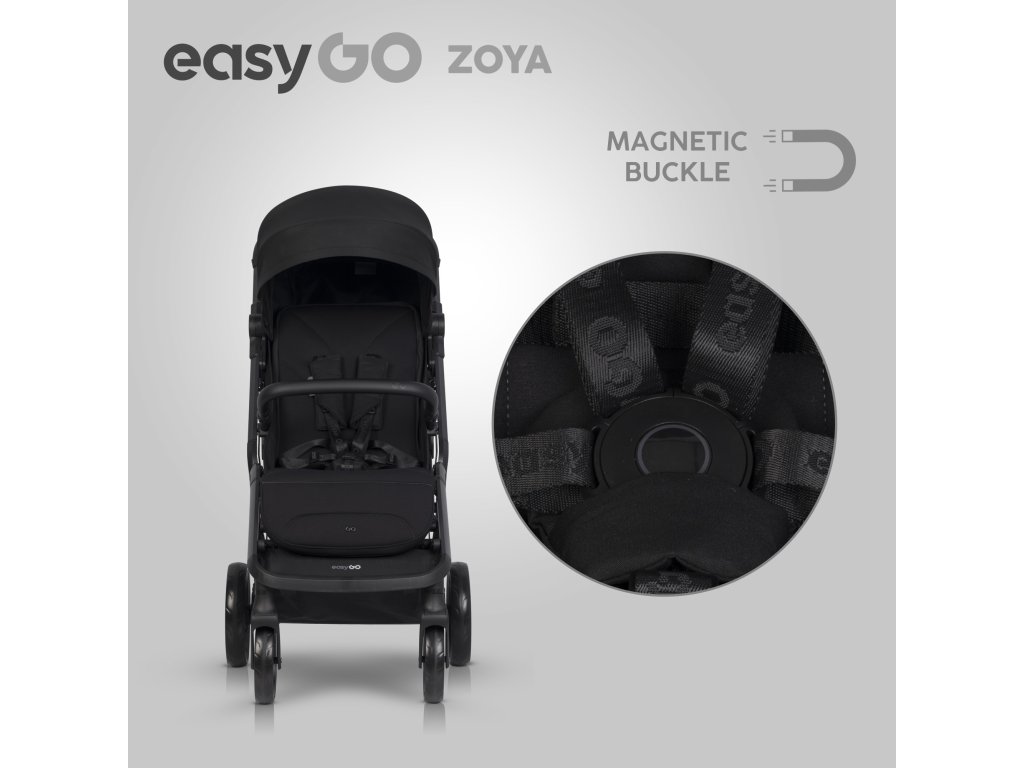 Můžete si také koupit sadu adaptérů na autosedačky pro kočárek ZOYA a vytvořit tak sadu 3v-1. Doporučujeme používat autosedačky BUZ, BUZ PRO nebo BUZ XTD od EasyGo, ale adaptéry vám také umožní instalovat širokou škálu sedadel od jiných populárních značek, které mají tzv. univerzální příslušenství (podrobnosti se zeptejte svého prodejce). EasyGo ZOYA ve verzi kočárku je kočárek s automatickým skládacím systémem.