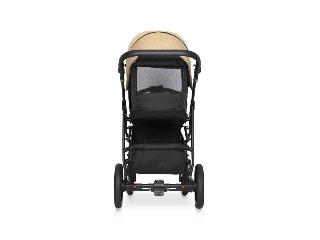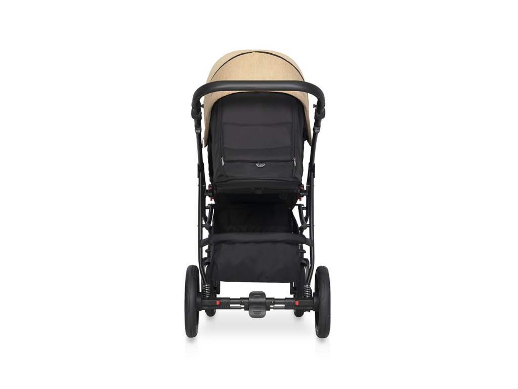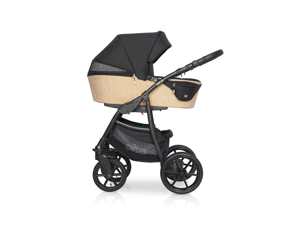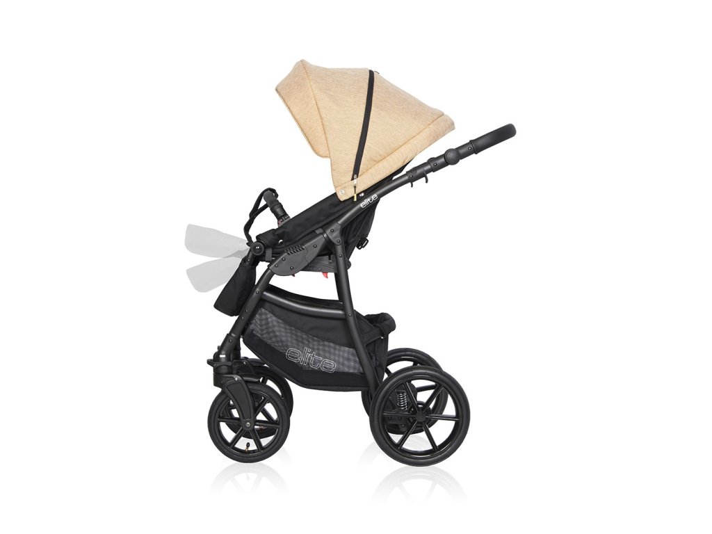 Rám kočárku je vyroben z odlehčeného hliníku, což velmi usnadní jakoukoliv manipulaci. Té přispěje i velmi snadné skládání konstrukce kočárku. Rukojeť je samozřejmě možné výškově nastavit a nastavení kdykoliv měnit podle výšky a preference toho, kdo zrovna kočárek veze. Potažená je eko kůží. Povrch samotného kočárku pak odpovídá textilním standardům Öko-Tex Standard 100. Velmi důležitou součástí každého kočárku je nákupní košík, jeho velikost a dostupnost, jelikož s kočárkem má každá máma plné ruce, takže případný nákup nebo cokoliv většího potřebuje naložit a převážet právě tam. Expander Elite má nákupní košík příjemně prostorný a velmi snadno dostupný. Na kočárku je možné vozit sedačky kategorie 0+.