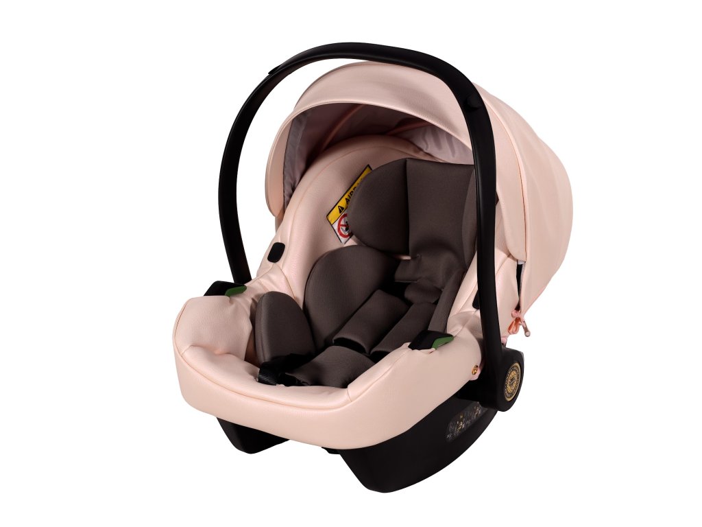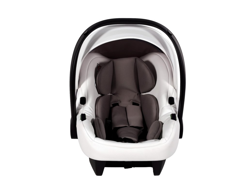 Kompletní travel system. Autosedačka se přímo připojí na rám kočárku — přenesete spící dítě z auta na kočárek bez probuzení, bez sundávání pásů. Bezpečnostní standard I-Size chrání dítě od prvních dnů.