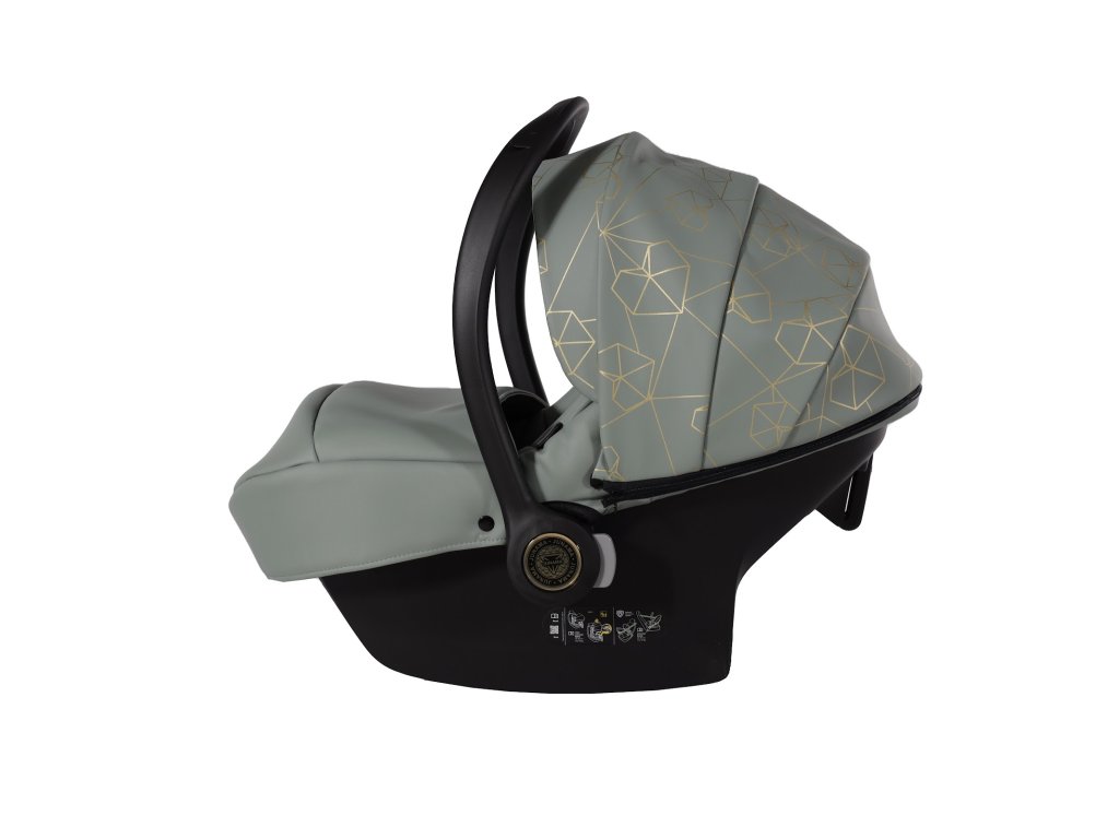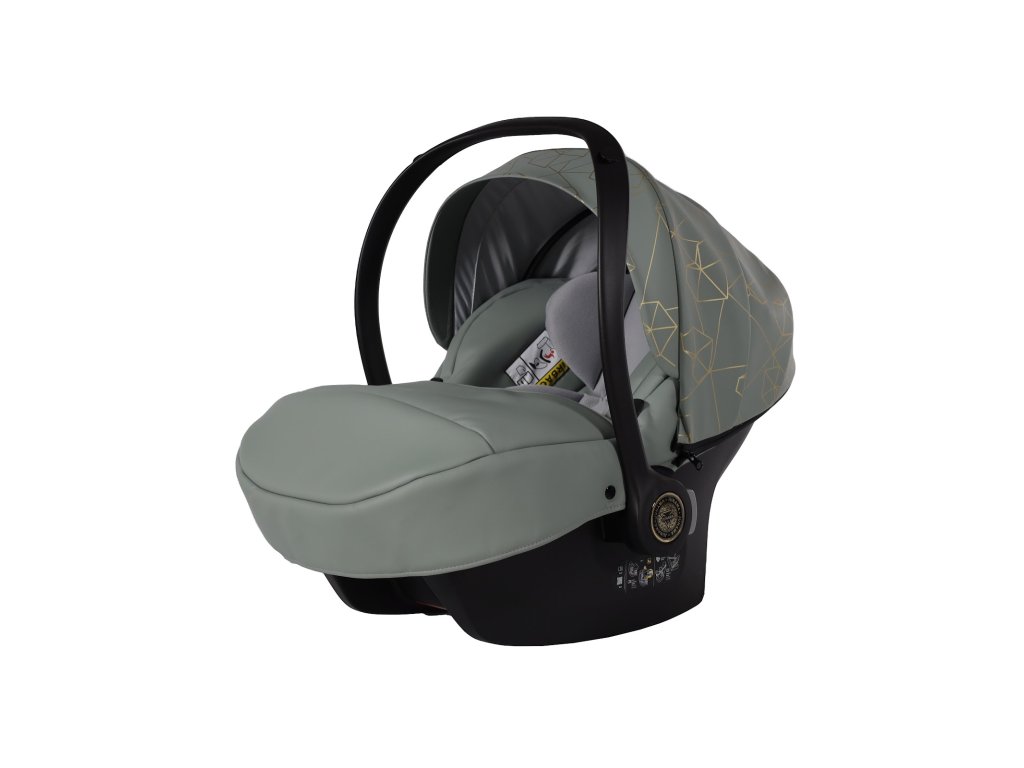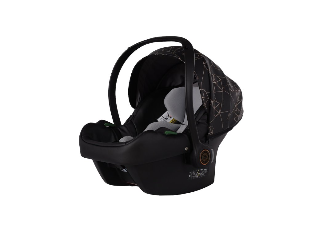 Kompletní travel system. Autosedačka se přímo připojí na rám kočárku — přenesete spící dítě z auta na kočárek bez probuzení, bez sundávání pásů. Bezpečnostní standard I-Size chrání dítě od prvních dnů.