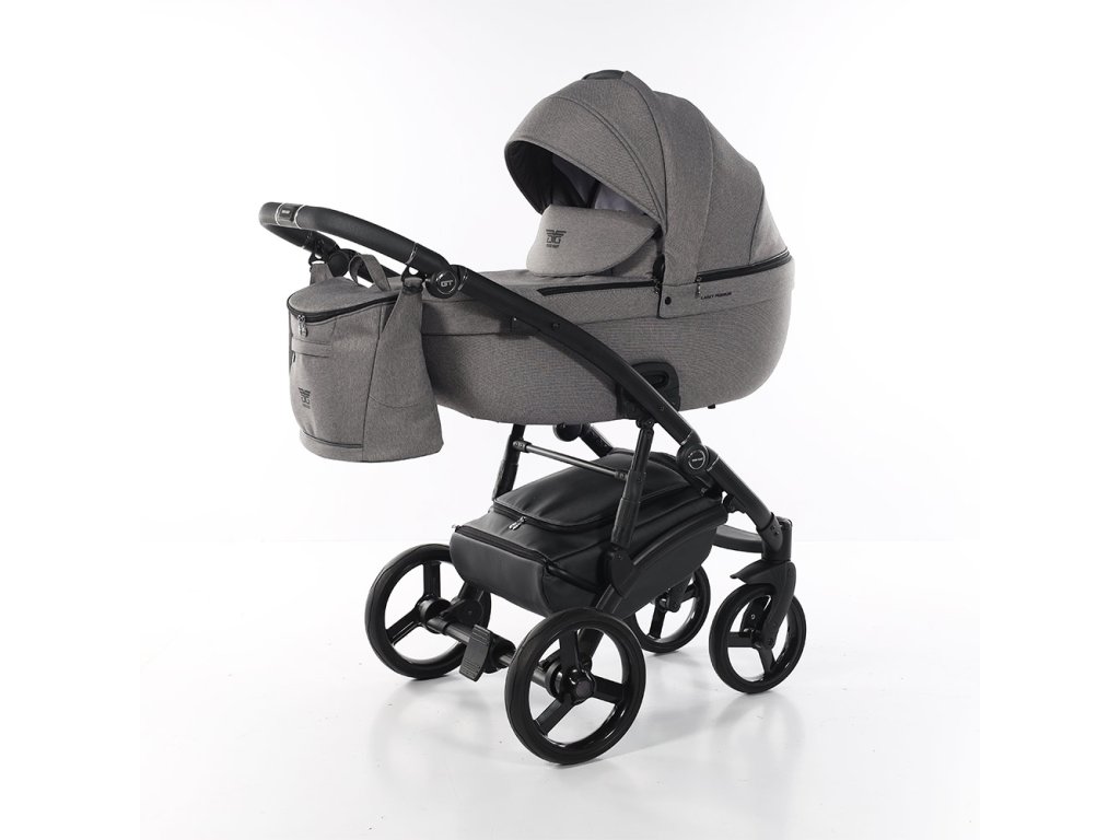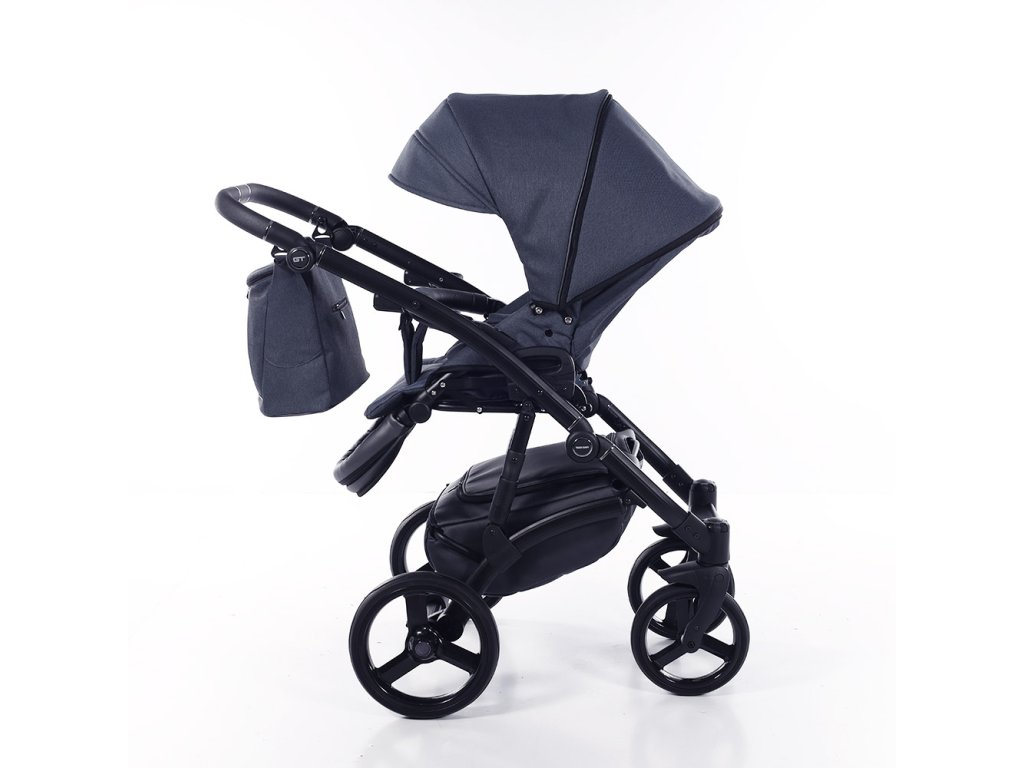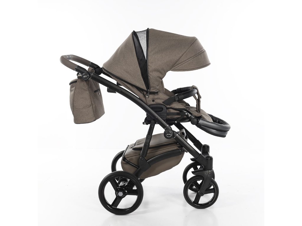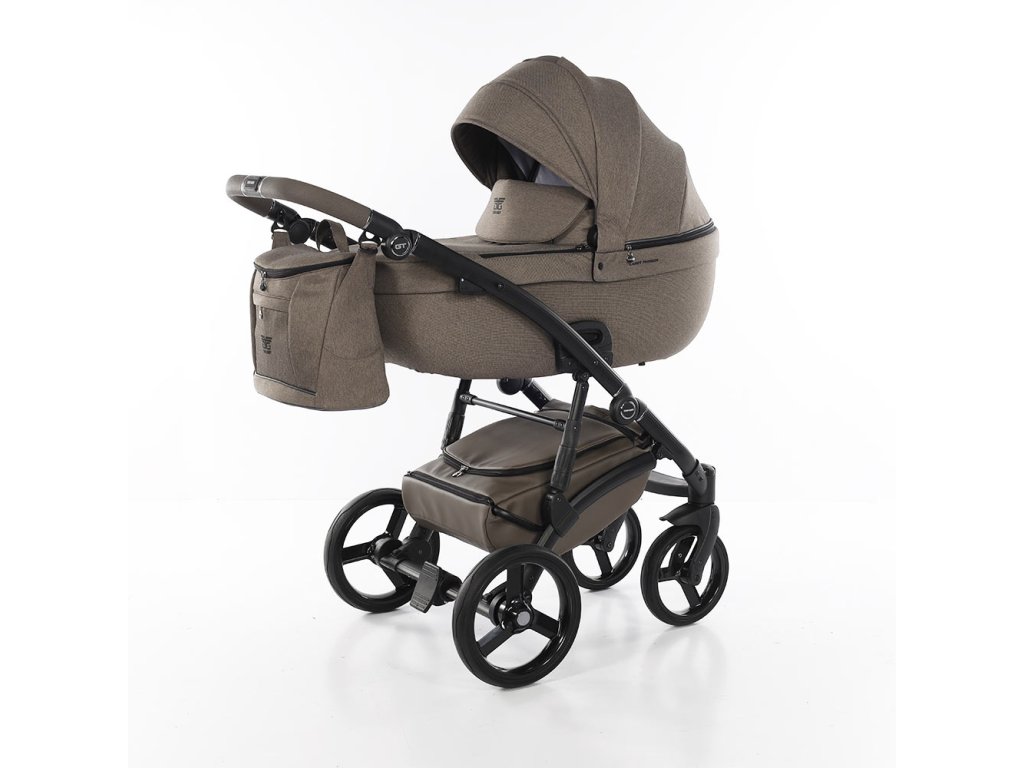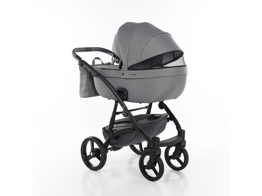 Podvozek kočárku má polohovací rukojeť potaženou ekokůží. Díky aretaci předních koleček a odpružení předních i zadních kol a přídavnými pružinami je kočárek vhodný do terénu. Podvozek se snadno skládá a díky pojistce proti rozložení je manipulace s ním snadná. Kola kočárku jsou gelová, takže nikdy nepíchnete. Brzda centrální kolébková.