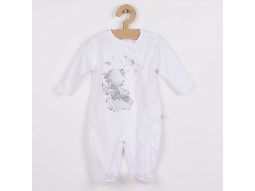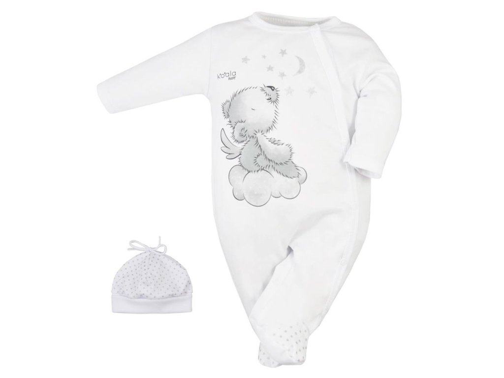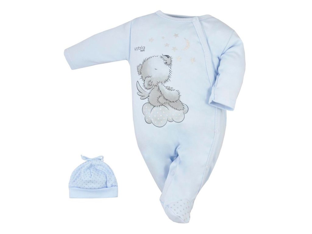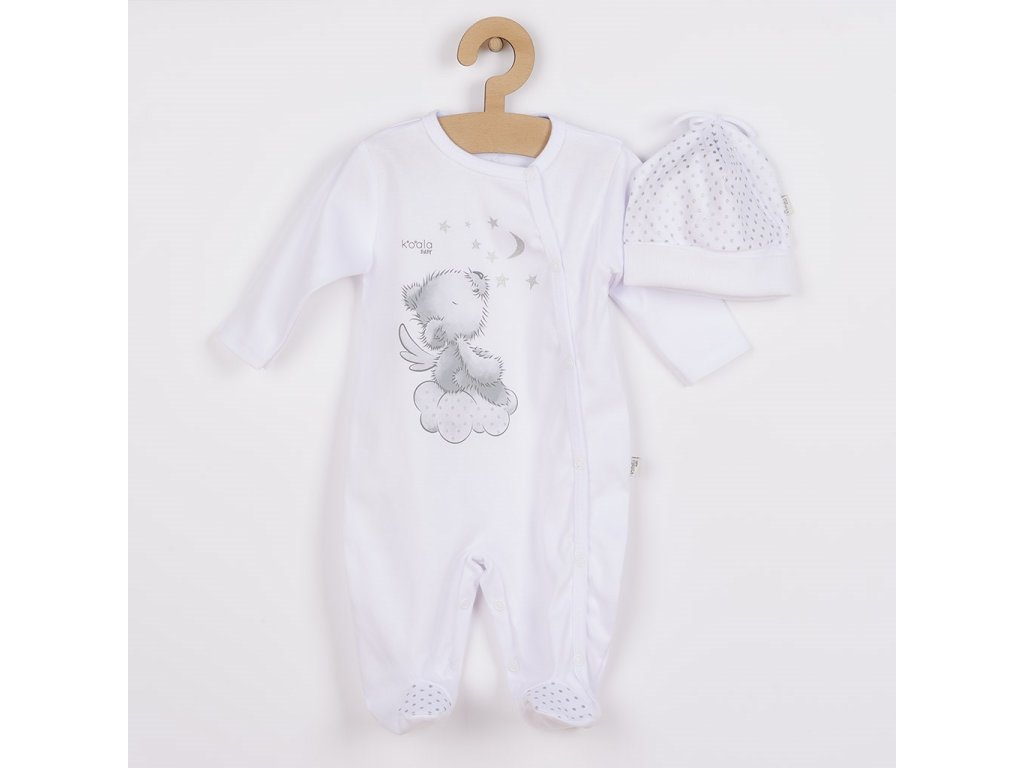 Okouzlující a jemný bavlněný kojenecký overálek s čepičkou Koala Angel. Overálek má moderní boční zapínání na cvočky po celé délce a mezi nožičkami. Je vhodný pro miminka už od narození pro svou jemnost a měkkost. Overal je zdoben obrázkem medvídka. Čepička s širším lemem krásně kryje ouška a je celopotištěná puntíky. Overal s čepičkou je vyroben z příjemného a kvalitního bavlněného materiálu, ve kterém se bude Vaše miminko cítit příjemně. Složení: 100% bavlna.Doplňkové parametry