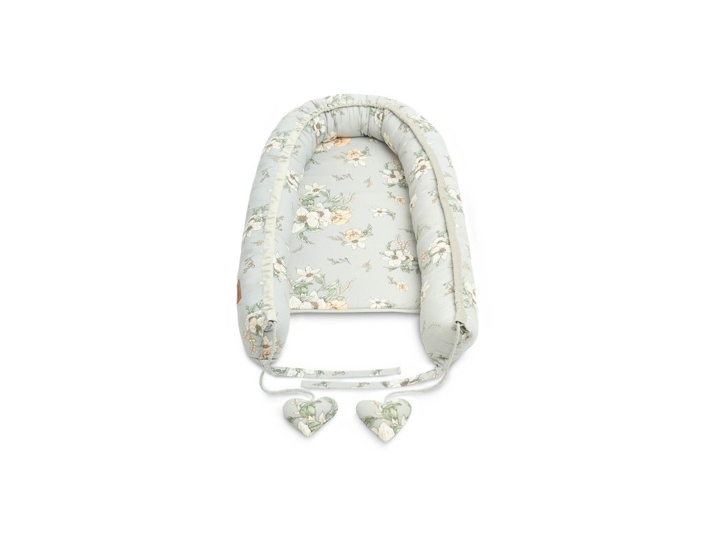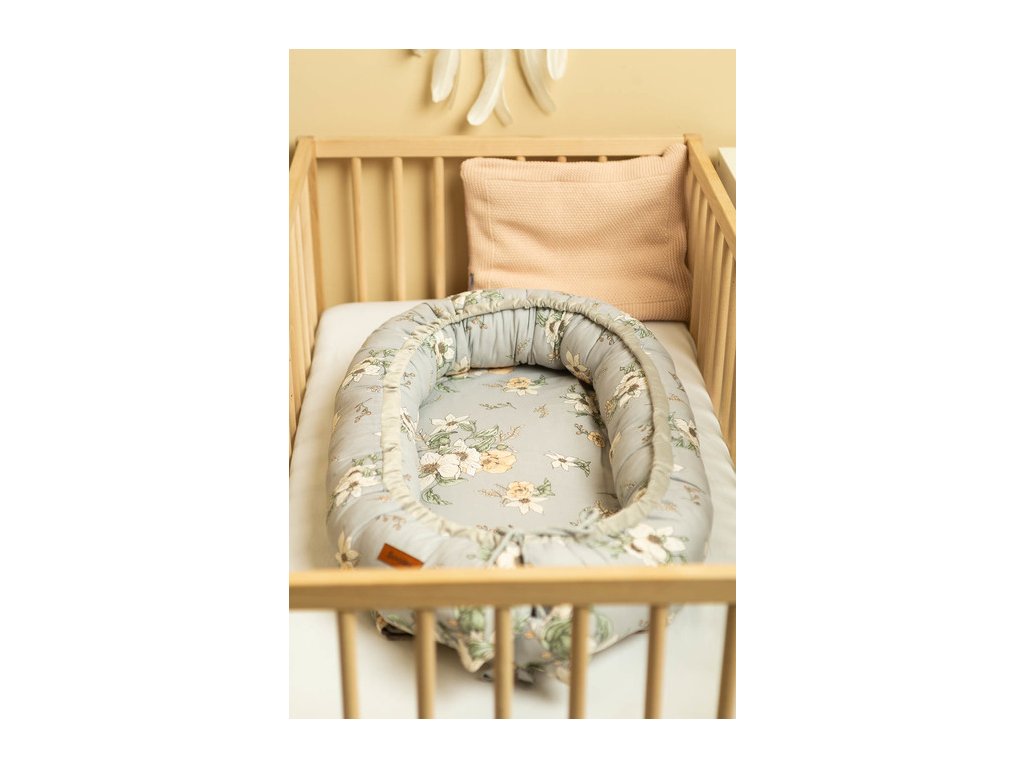 Kokon Velvet od Sensillo stworzony został z myślą o dzieciach od narodzin do ok. 6 miesiąca życia. Idealnie otula niemowlę i ogranicza mu przestrzeń, dzięki czemu dziecko czuje się bezpiecznie jak w brzuchu mamy. Wysokie ścianki zapobiegają sturlaniu się dziecka. Podłoże stanowi wyjmowany materacyk, który z jednej strony pokryty jest aksamitną tkaniną velvet a z drugiej delikatną 100% bawełną. Wypełnienie wałka stanowi antyalergiczne wypełnienie silikonowe.Sprawdzi się w wielu sytuacjach: w łóżku rodziców, na kanapie, w łóżeczku i podczas wyjazdów.