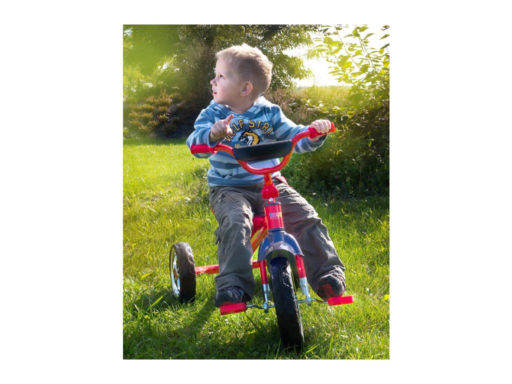 - Bezpečnost: Tříkolka je vybavena stabilním zadním opěrným kolečkem, které zajišťuje vysokou stabilitu během jízdy.