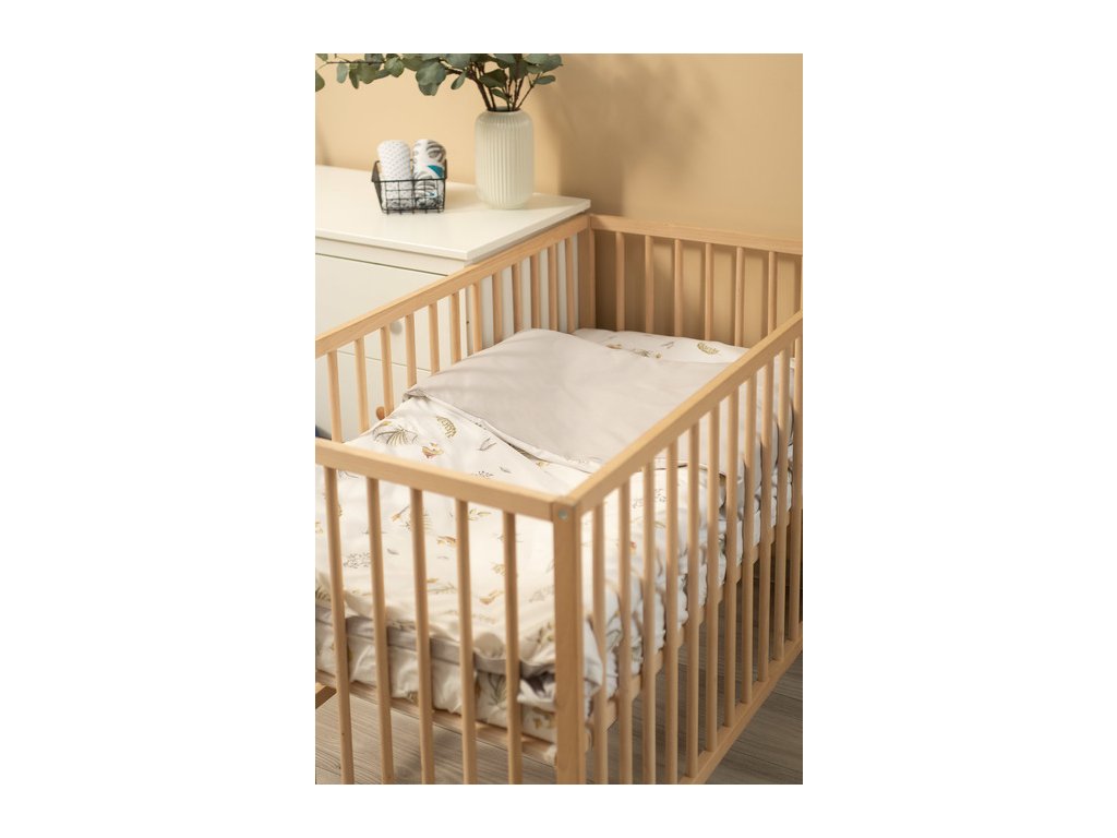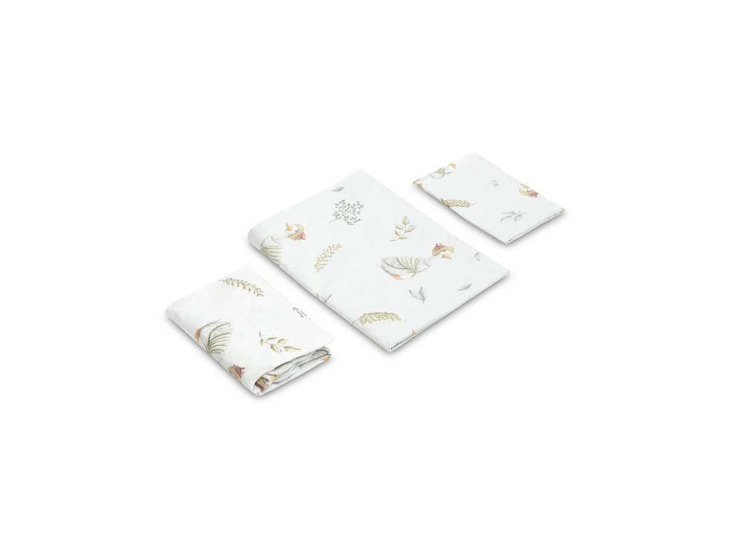 Sada obsahuje povlaky na přikrývky a polštáře a vypasované prostěradlo. Je vyrobena ze 100% bavlny, která je příjemná na dotek a odolná. Je určena pro dětské postýlky 120x60 cm. Povlaky na přikrývky a polštáře se zapínají na zip. Prostěradlo má všitou gumičku. Barevné kombinace kombinující vzorovanou bavlnu s hladkou barvou jedné strany přikrývky se skvěle hodí do každého dětského pokoje.