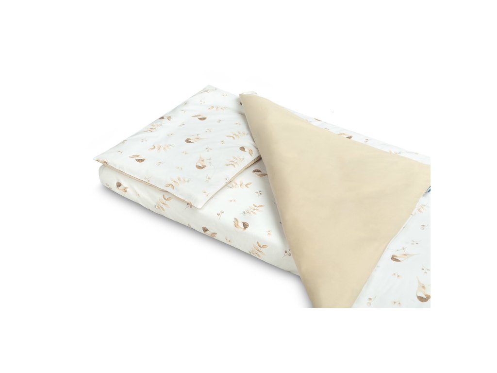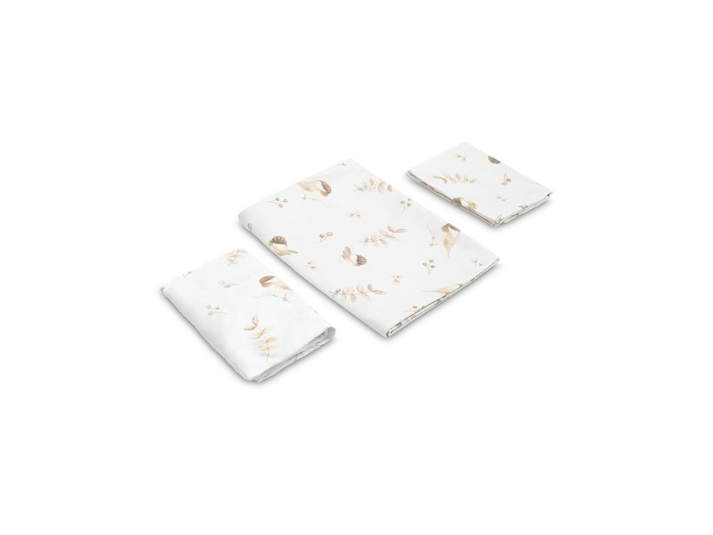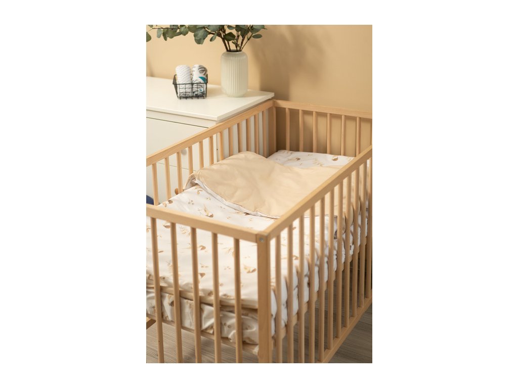 Komplet zawiera poszewki na kołderkę i poduszkę oraz prześcieradło z gumką. Uszyty jest z miłej w dotyku i trwałej bawełny 100%. Przeznaczony jest do łóżeczek 120x60 cm. Poszewki na kołdrę oraz poduszkę są zapinane na zamek. Prześcieradło posiada wszytą gumkę. Połączenia kolorystyczne łączące wzorzystą bawełnę z gładkim kolorem jednej ze stron kołdry będą idealnie pasowały do każdego dziecięcego pokoiku.