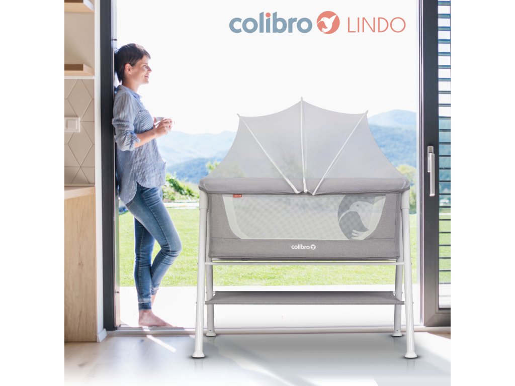 - ✔ Dětská postýlka Lindo od značky Colibro, včetně matrace a moskytiéry