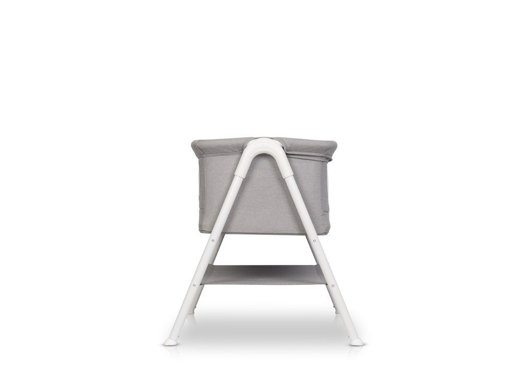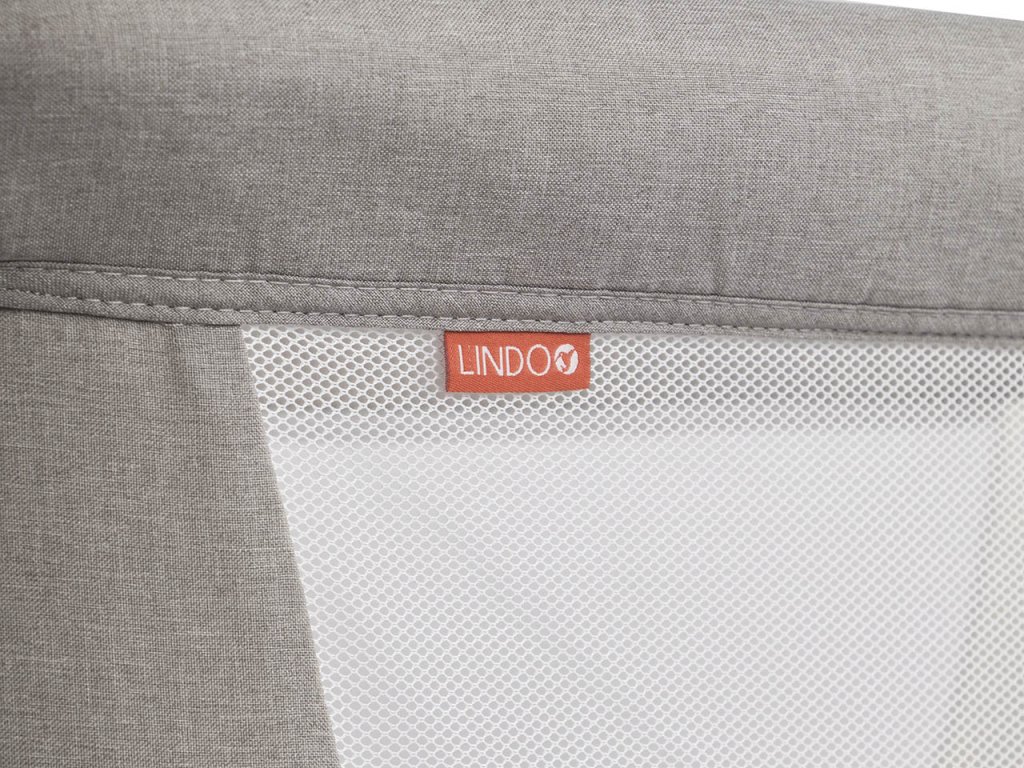 Díky jednoduché elegantní formě, která je kombinací látky typu eko len s bílými designovými prvky, postýlka LINDO dokonale zapadne do výzdoby většiny interiérů.