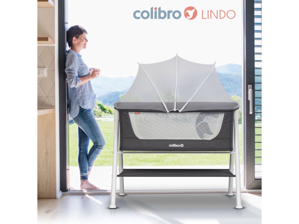 - ✔ Dětská postýlka Lindo od značky Colibro, včetně matrace a moskytiéry