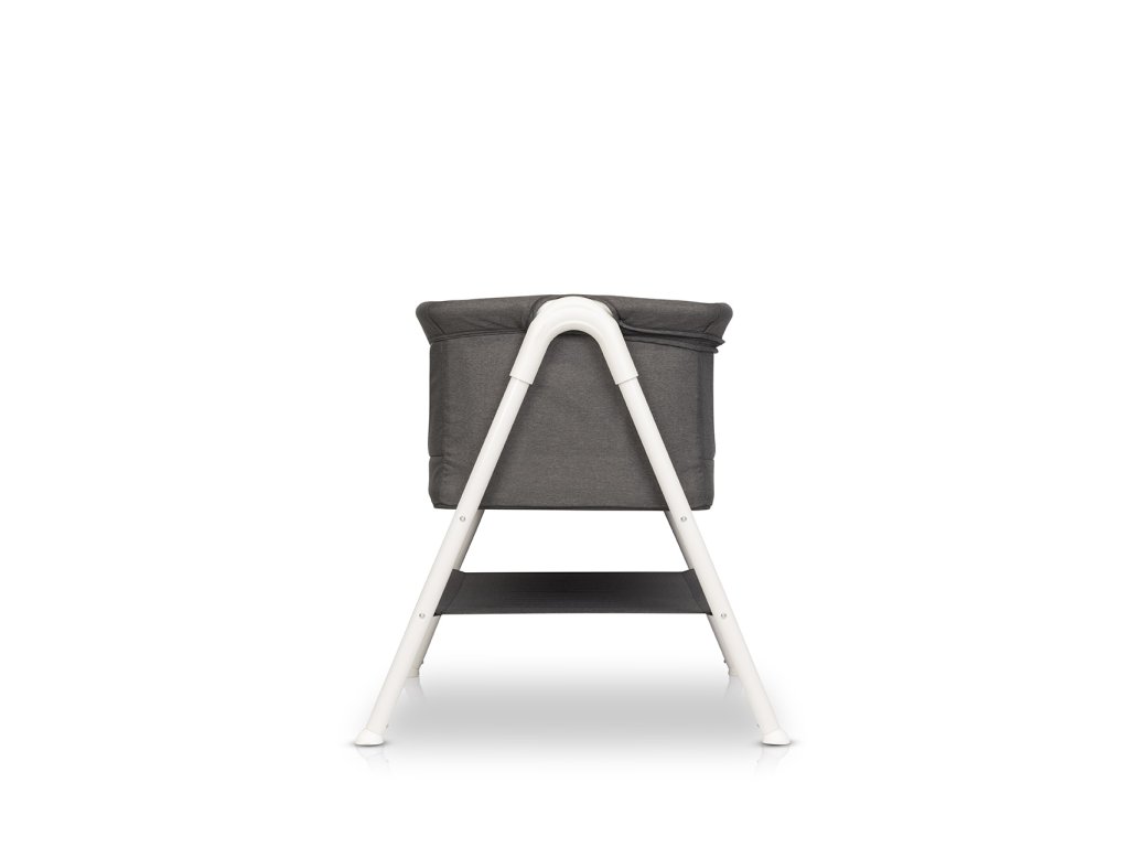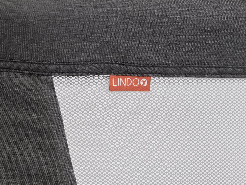 Díky jednoduché elegantní formě, která je kombinací látky typu eko len s bílými designovými prvky, postýlka LINDO dokonale zapadne do výzdoby většiny interiérů.